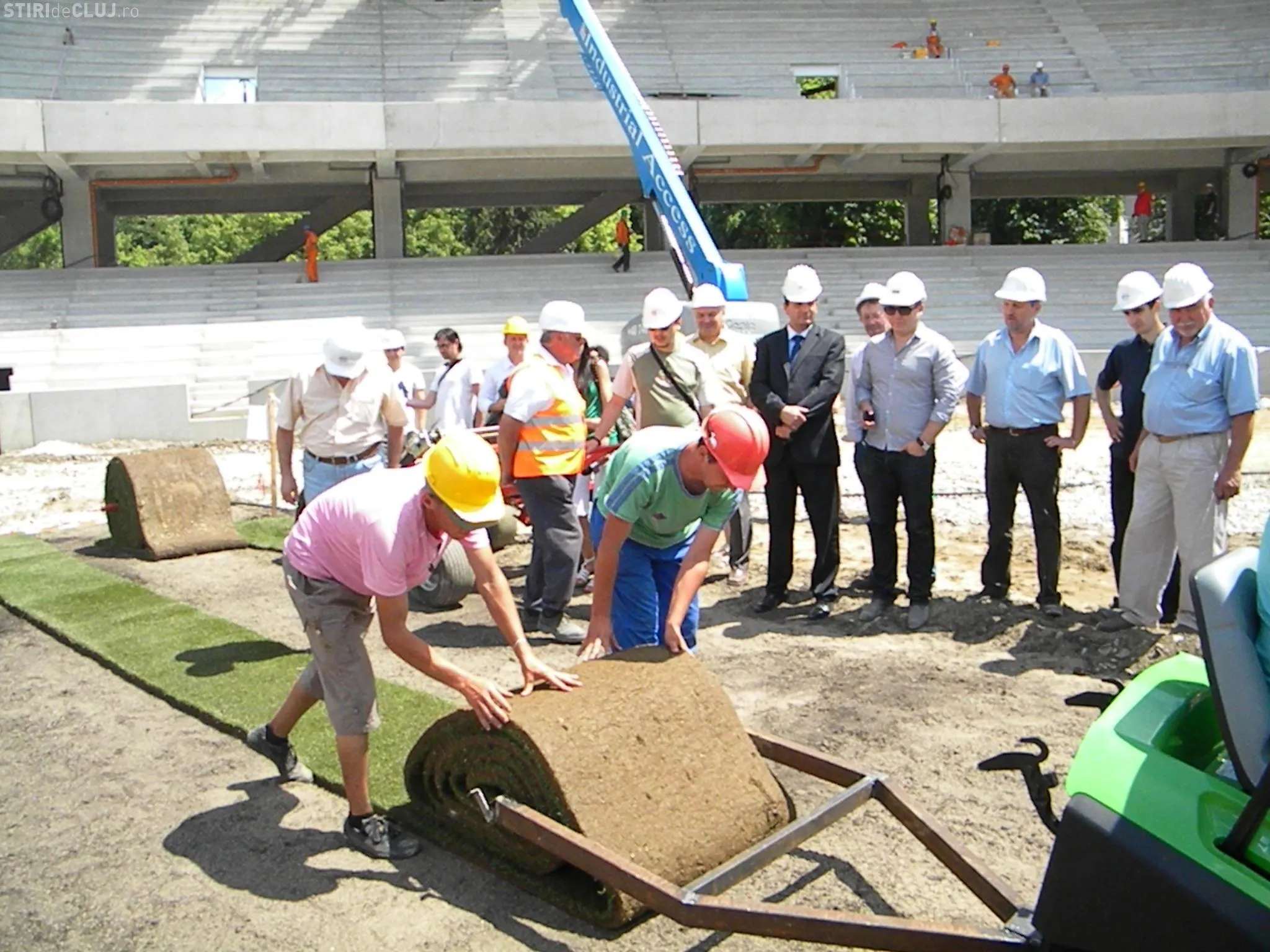 Prima rola de gazon a fost asternuta pe stadionul "Cluj Arena" chiar de presedintele Consiliului Judetean Cluj, Alin Tise. Munca va fi terminata in circa 14 zile sustin constructorii arenei.