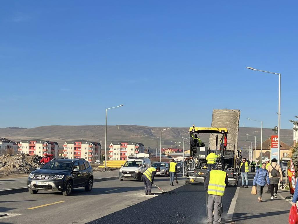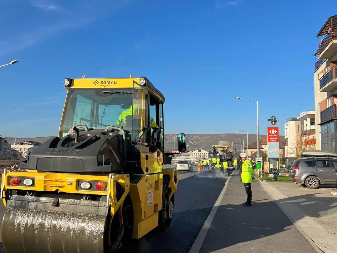Miercuri, 30 noiembrie a.c continuă turnarea asfaltului final pe întreaga lungime rămasă.
