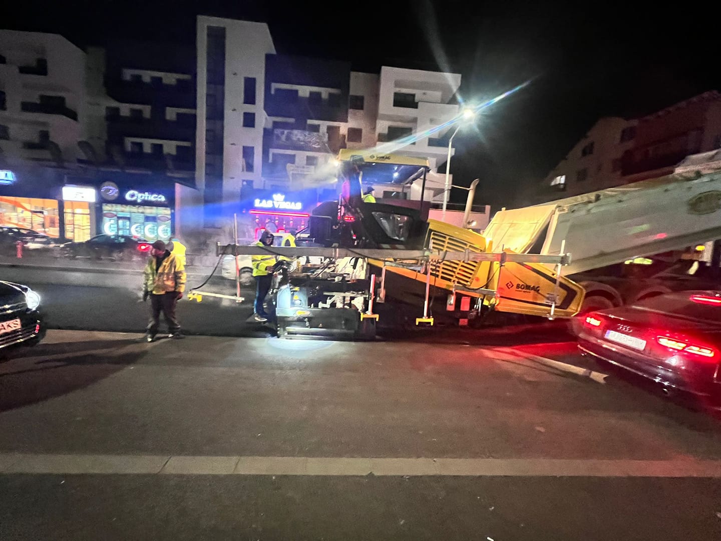 Muncitorii au turnat asfalt pe strada Eroilor, din Florești, chiar și în noaptea de marți spre miercuri.