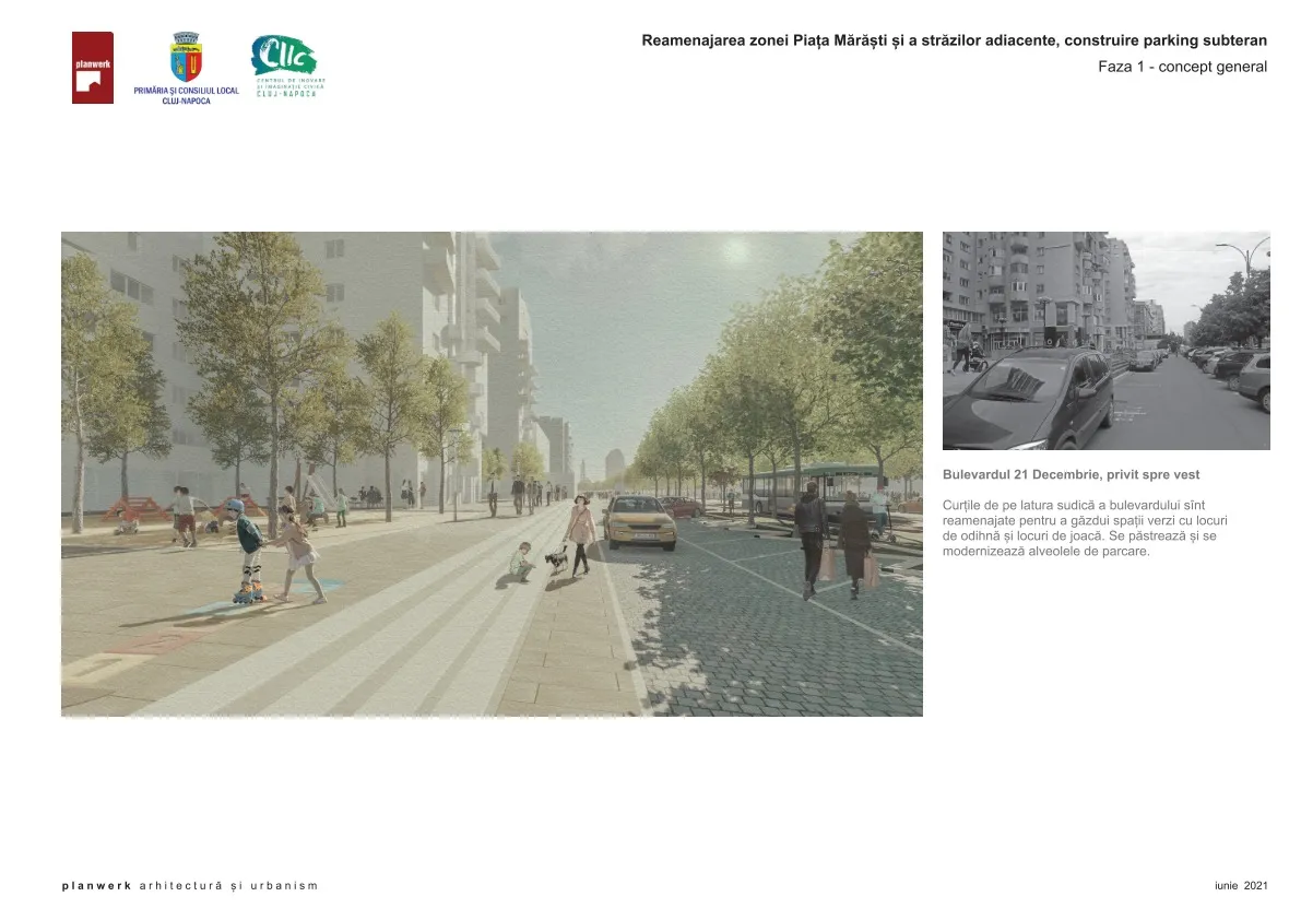 • se reorganizează parcajul la sol din apropierea intersecției cu Bulevardul 21 Decembrie 1989.