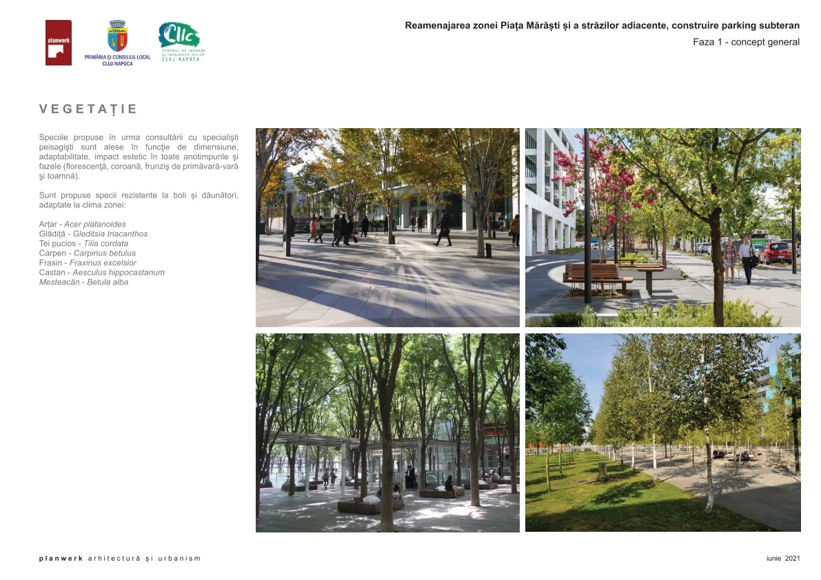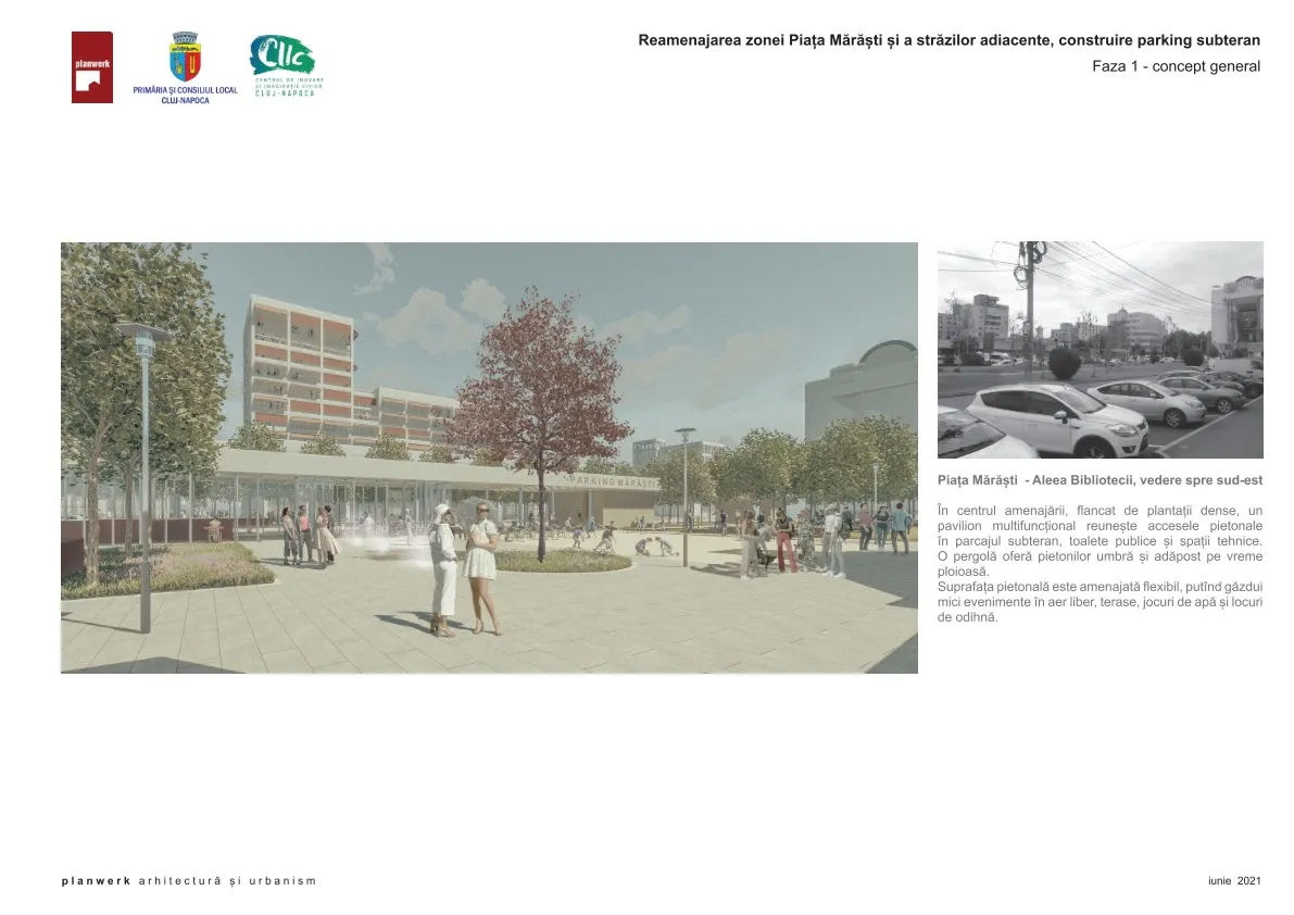 • se propune realizarea unui parcaj subteran, pe două niveluri și reamenajarea spațiului public de la partea superioară a parcajului;