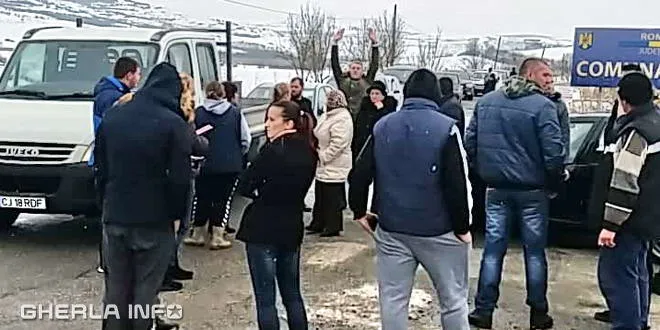 Zeci de oameni din Aluniș au blocat drumul, nemulțumiți că își rup mașinile în gropi.