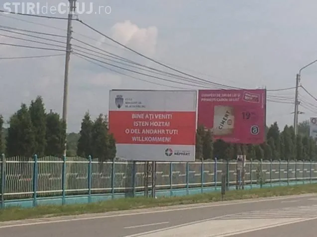 Cele doua panouri publicitar pe care a fost lipit un afis pe care scria "Bine ati venit!" in mai multe limbi, intre care si maghira, a fost dat jos de Primaria Floresti.