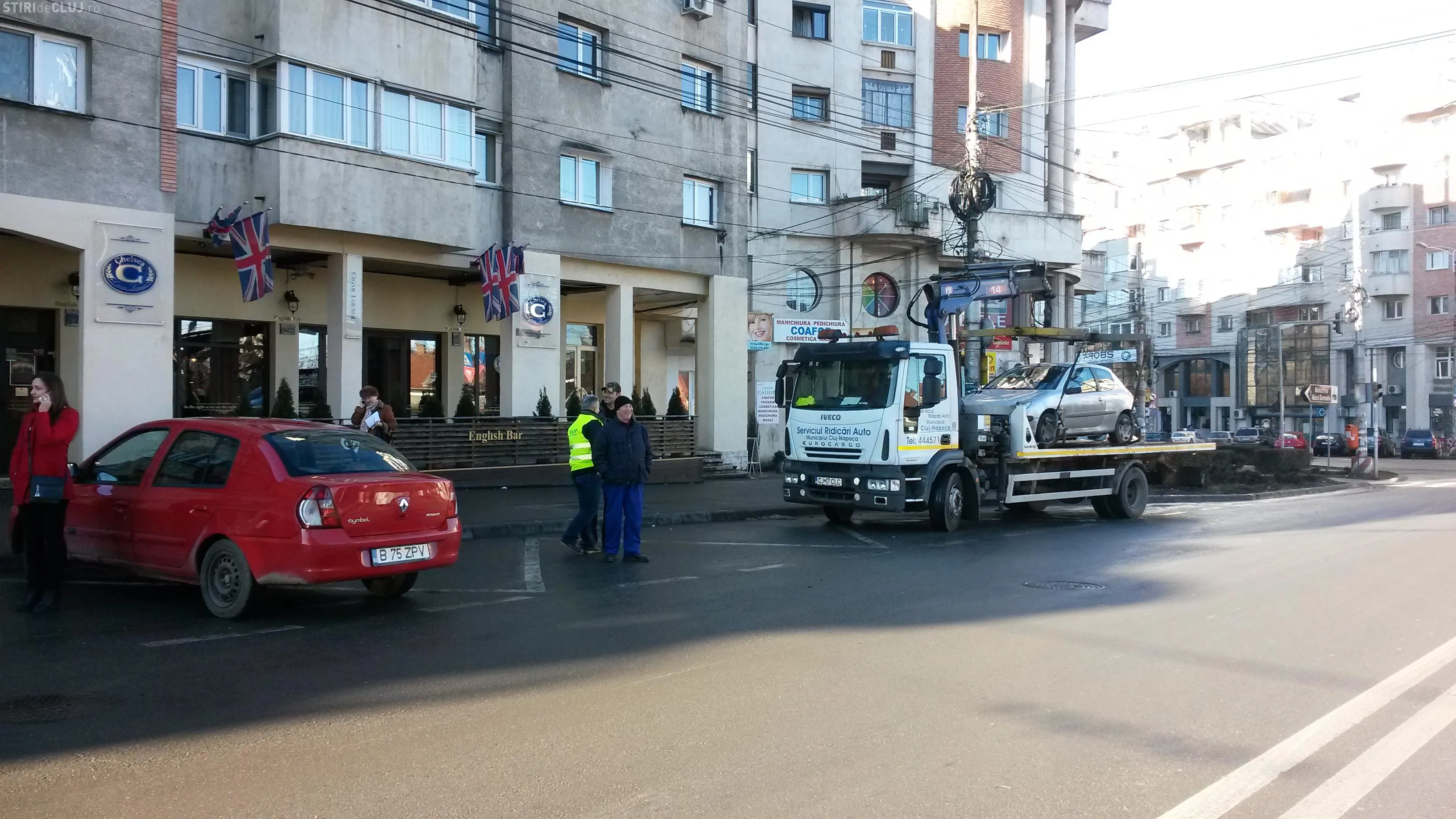 Poliția Locală a ridicat, luni dimineața, un autoturism parcat în stația de autobuz 32, din Piața Cipariu, din fața unui restaurant care a devenit un magnet în zonă.