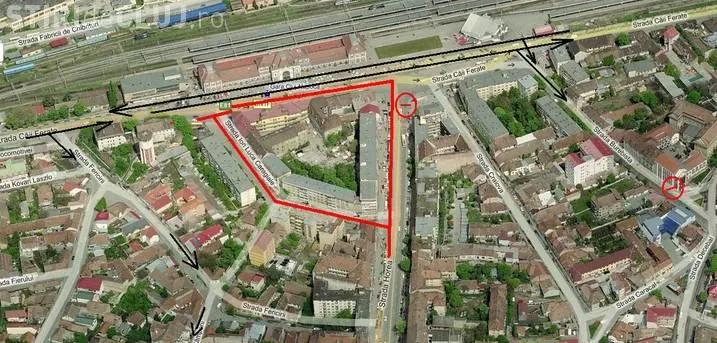 - pe directia strazii Caii Ferate - centru: strada Burebista - strada Iuliu Coroianu - strada Traian - pod Traian