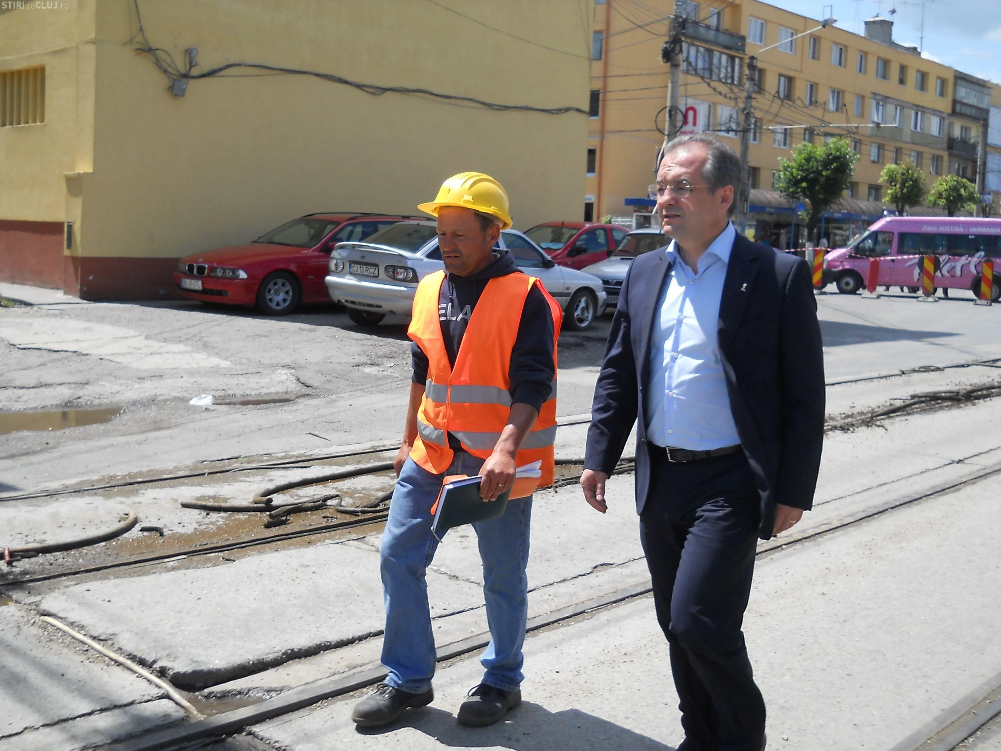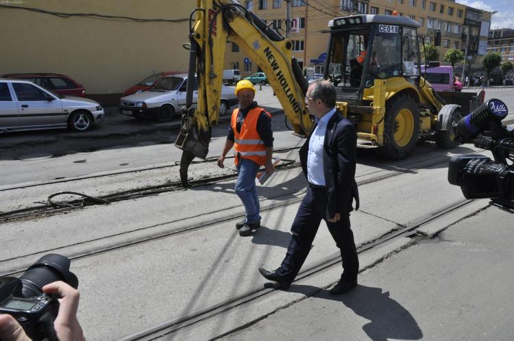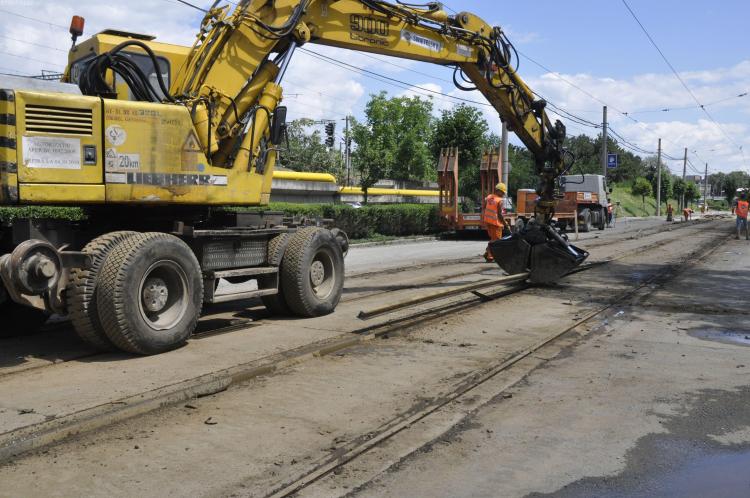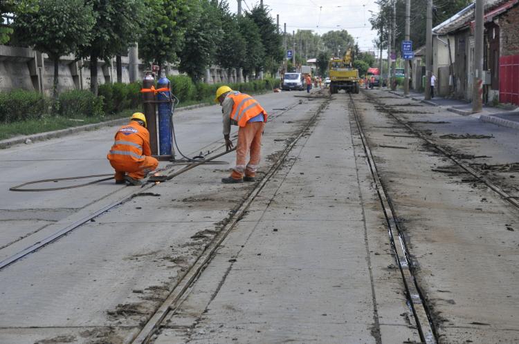 În acest moment se lucrează la coaterea vechilor şine de tramvai din asfalt şi ulterior se vor începe lucrările de costruire a fundaţiei.