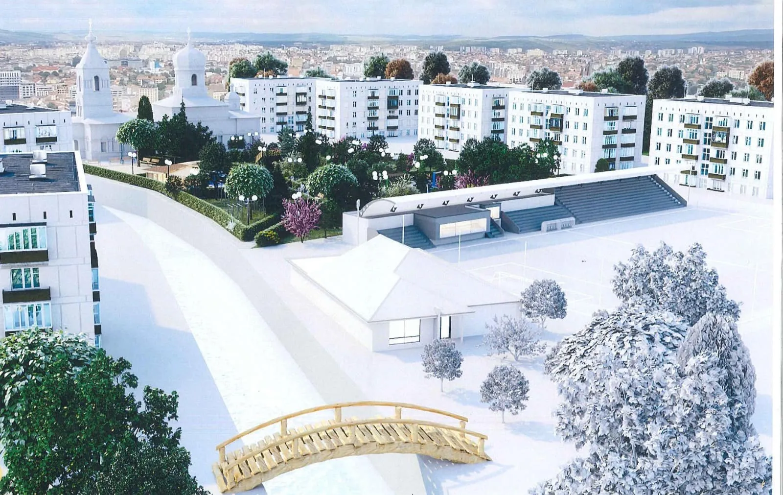 Rețeaua de iluminat public va fi modernizată cu aparate de iluminat cu tehnologie LED iar sistemul de irigație va funcționa prin aspersiune. Dotarea cu mobilier urban nou presupune grupuri de mese cu bănci - utilizate pentru joc de şah - mese de ping-pong, complex modern de joacă pentru copii – confecţionat pe structură de lemn - echipamente de fitness și cişmele. Accesibilitatea persoanelor cu dizabilități va fi asigurată prin amplasarea unor bănci cu spătar, fără brațe laterale. Se va amenaja un rastel de biciclete de 13 m lungime, racordat la reţeaua de curent electric, iar întreaga suprafață a parcului va fi monitorizată de un sistem de supraveghere video.