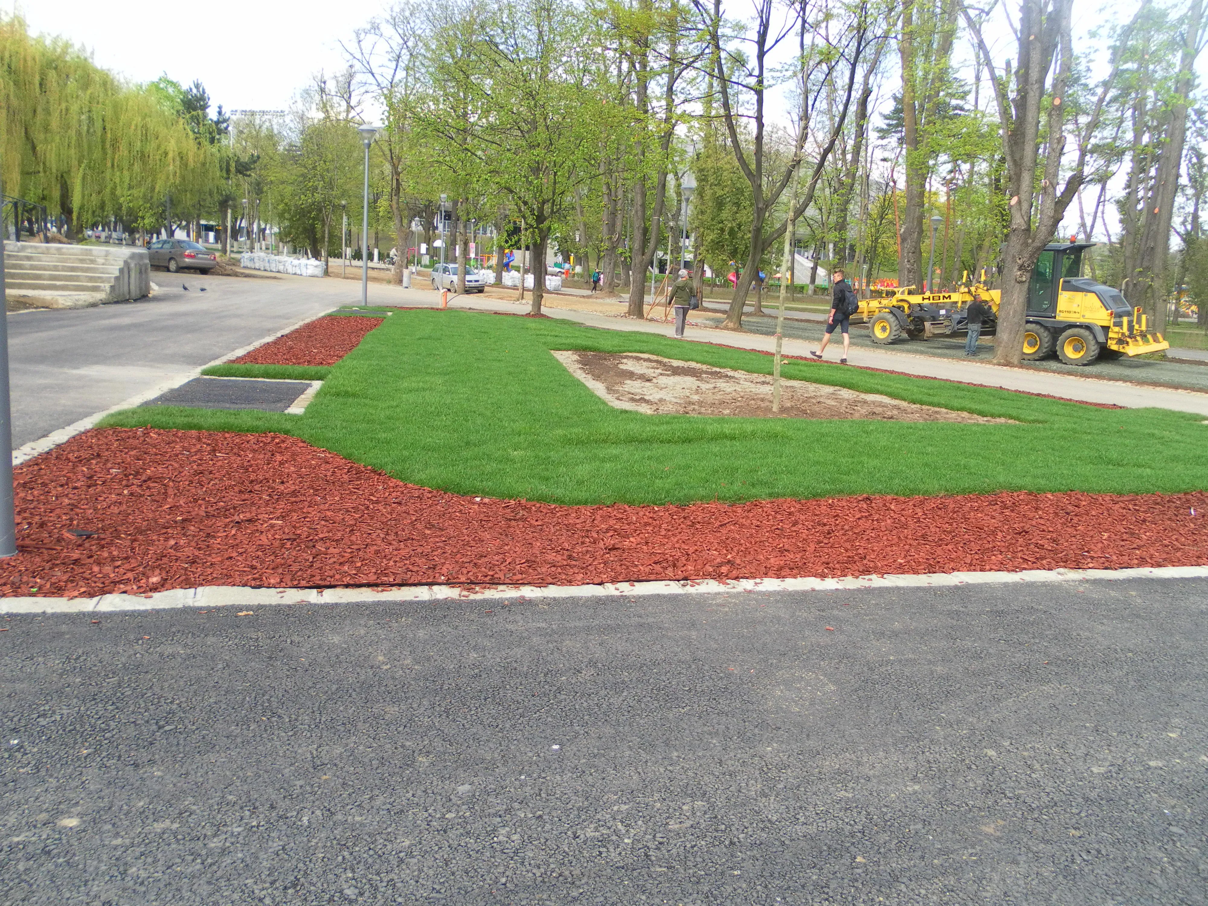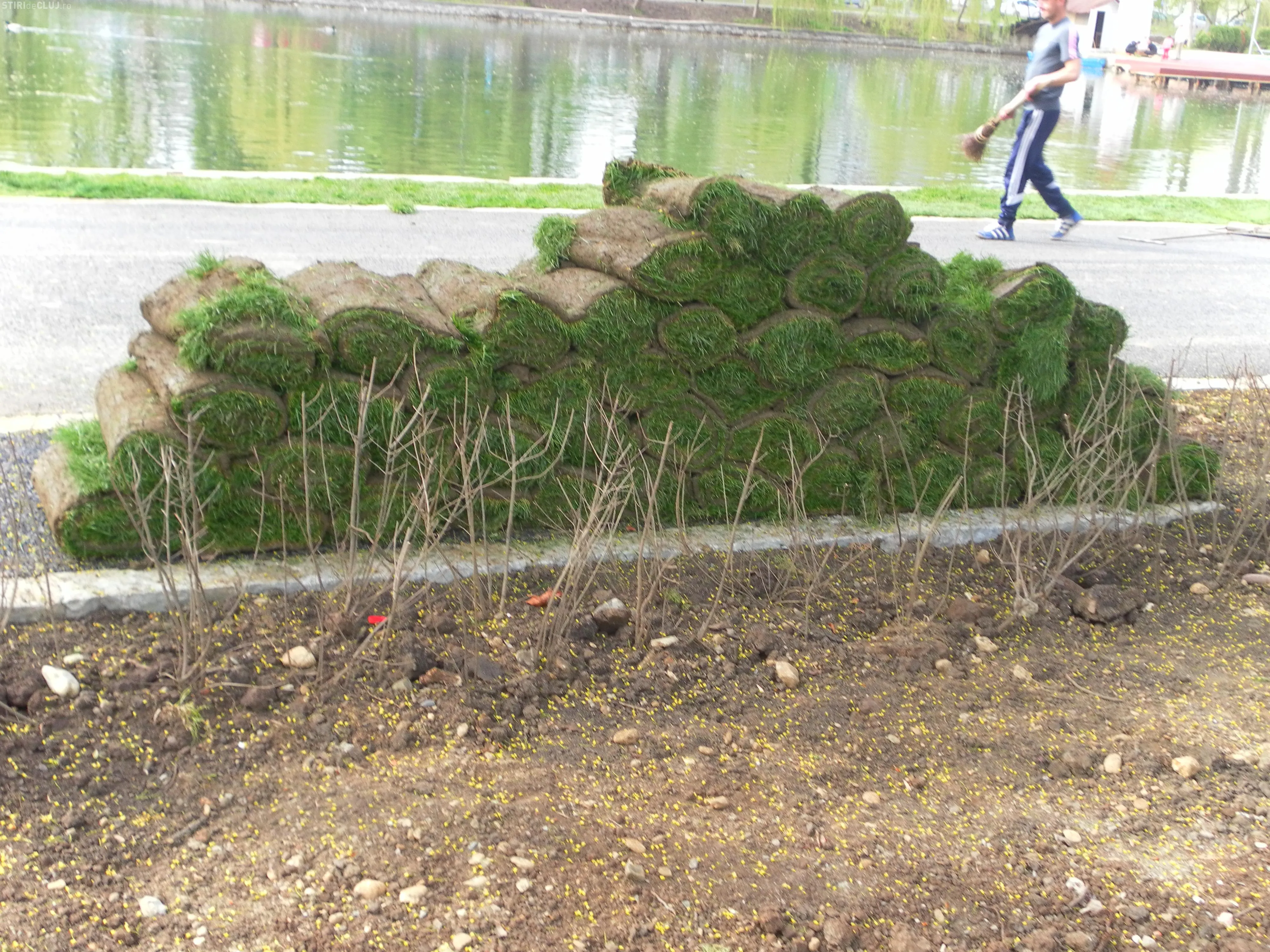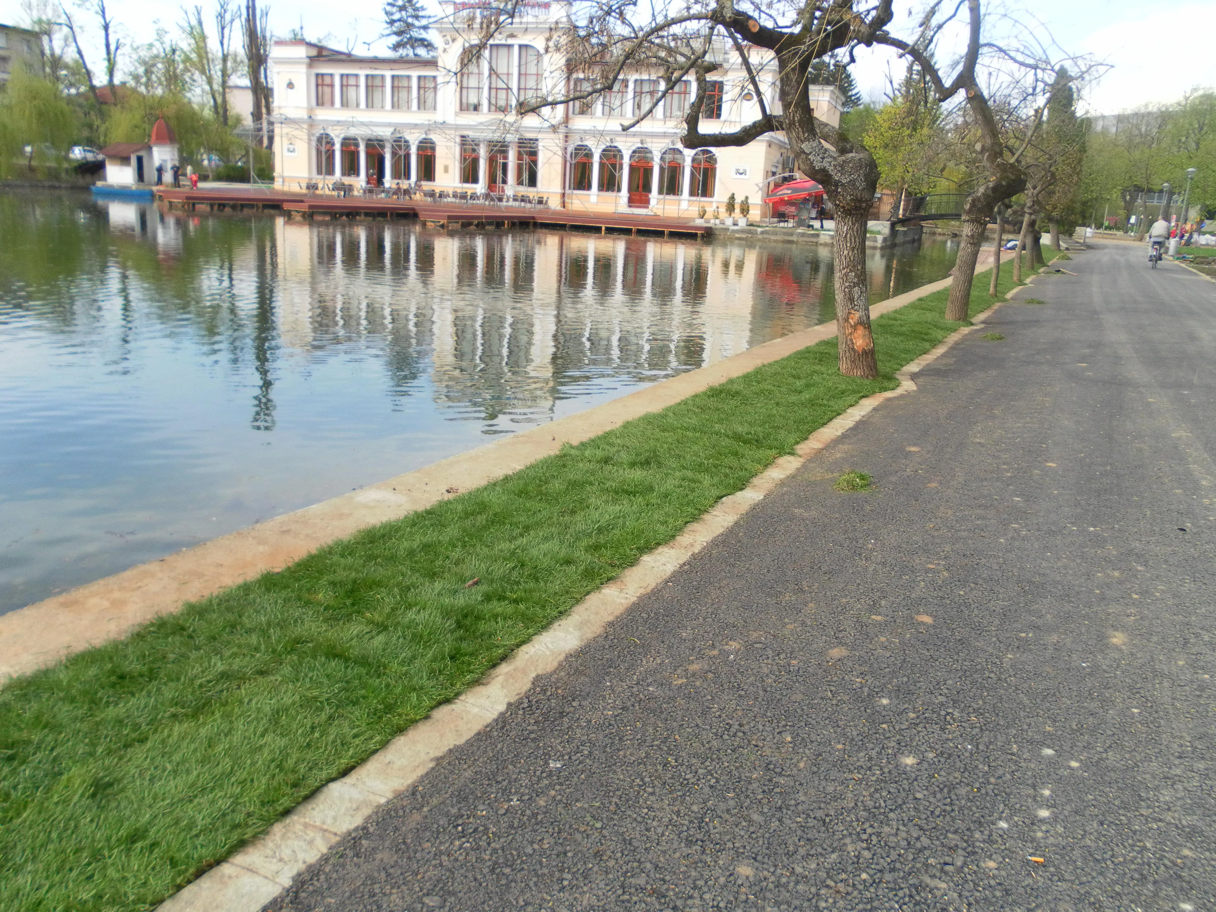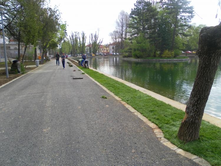 Se monteaza gazon in jurul lacului Chios! Parcul Central este de poveste VIDEO si FOTO