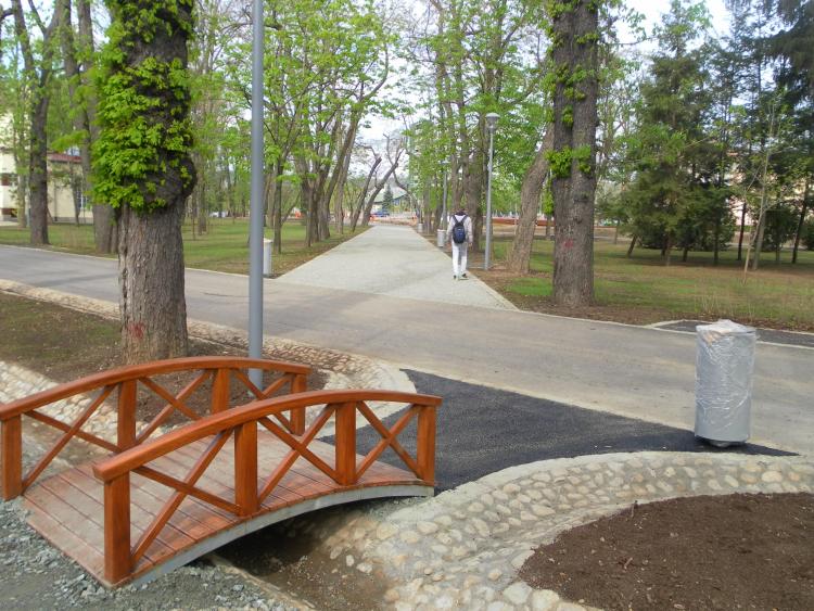 In total, vor fi montate 232 de banci si 32 de podete, care vor face legatura intre aleile din Parcul Central. Bancile si podetele au fost realizate din lemn pentru a se pastra aspectul natural al parcului. "Am plantat si 100 de arbori, intre care si cativa platani. Vrem ca oamenii sa poata intra in parc si sa se poata aseza pe jos. Este dorinta noastra ca acest parc sa arate ca unul european", a mai afirmat Ovidiu Campean.
