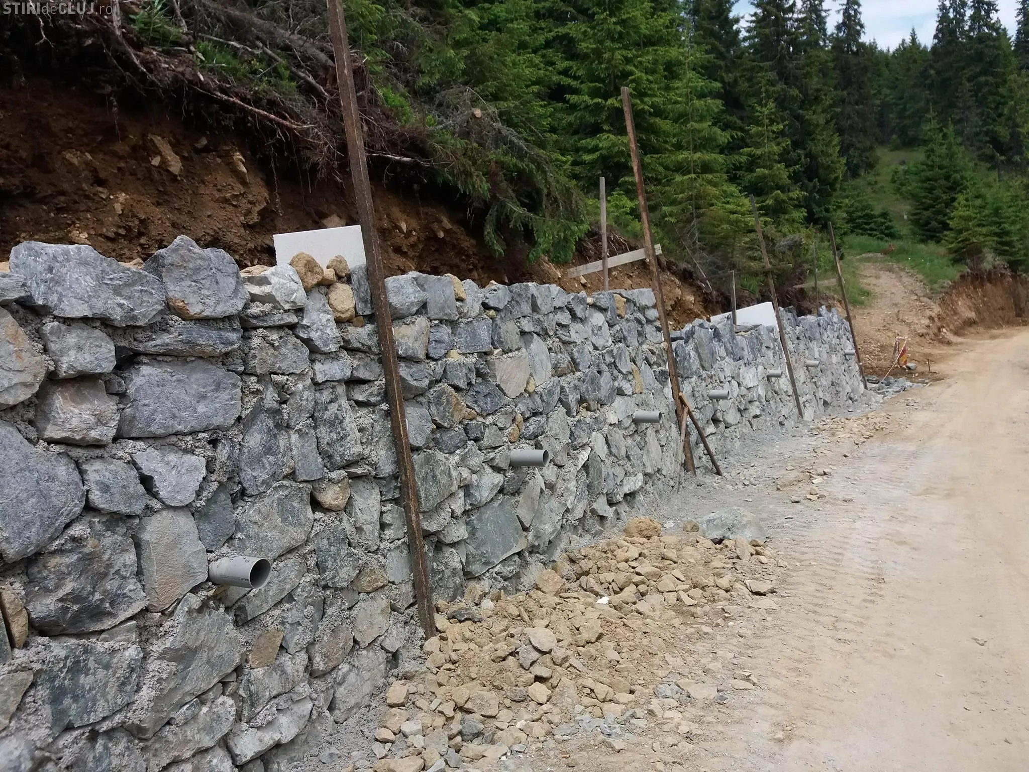 Se ridică ziduri de sprijin pe drumul spre pârtia de schi Buscat - FOTO
