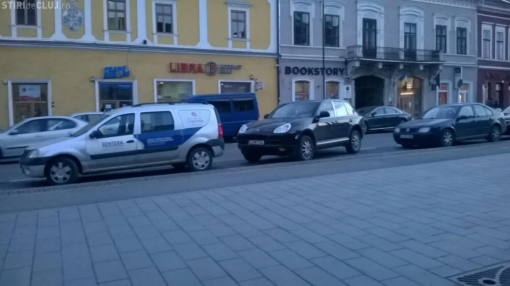 Senatorul PDL Cluj, Alin Tișe, și-a parcat SUV -ul Porsche Cayenne jumătate pe stradă, vineri după-amiaza, blocând o bandă.