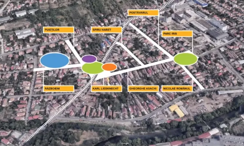 Propunerea vizează amenajarea unor legături pietonale între Piața Liebknecht - Parc Iris și străzile adiacente, pe o suprafață de 23.500 de mp și care cuprinde Strada Karl Liebknecht, strada Războieni, strada Puieților, strada Gheorghe Asachi, strada Spiru Haret, strada Postăvaru, strada Nicolae Românul, strada Iris (parțial), Parcul Iris.