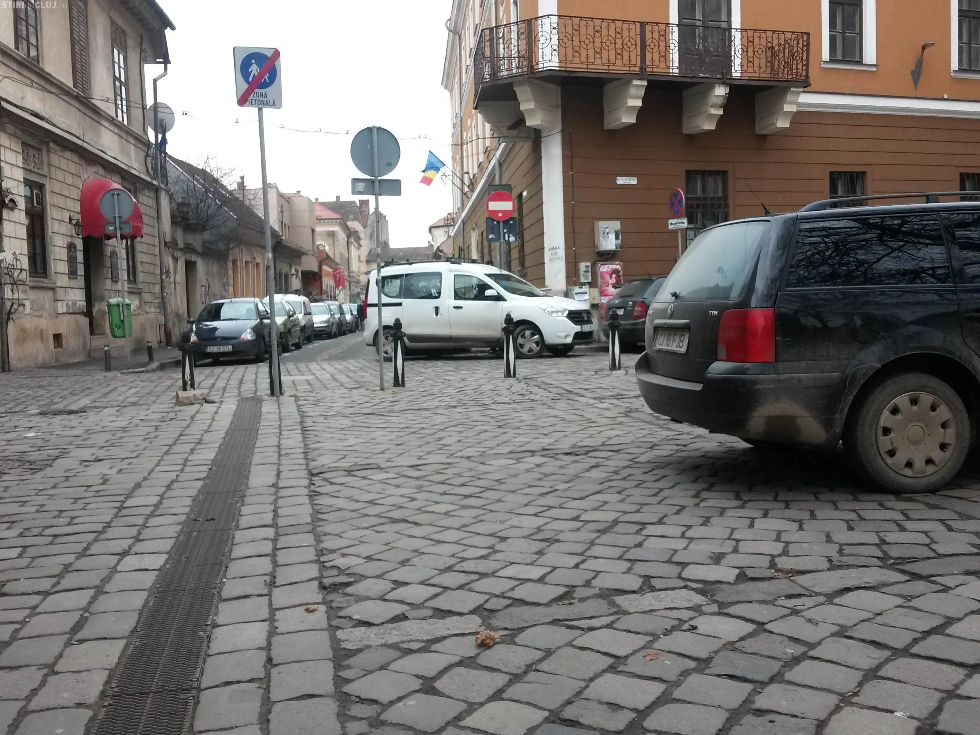 Piața s-a transformat de câteva luni în parcare publică, după ce s-a defectat stâlpișorul hidraulic care limita accesul în Piața numai pentru cazurile de urgență.