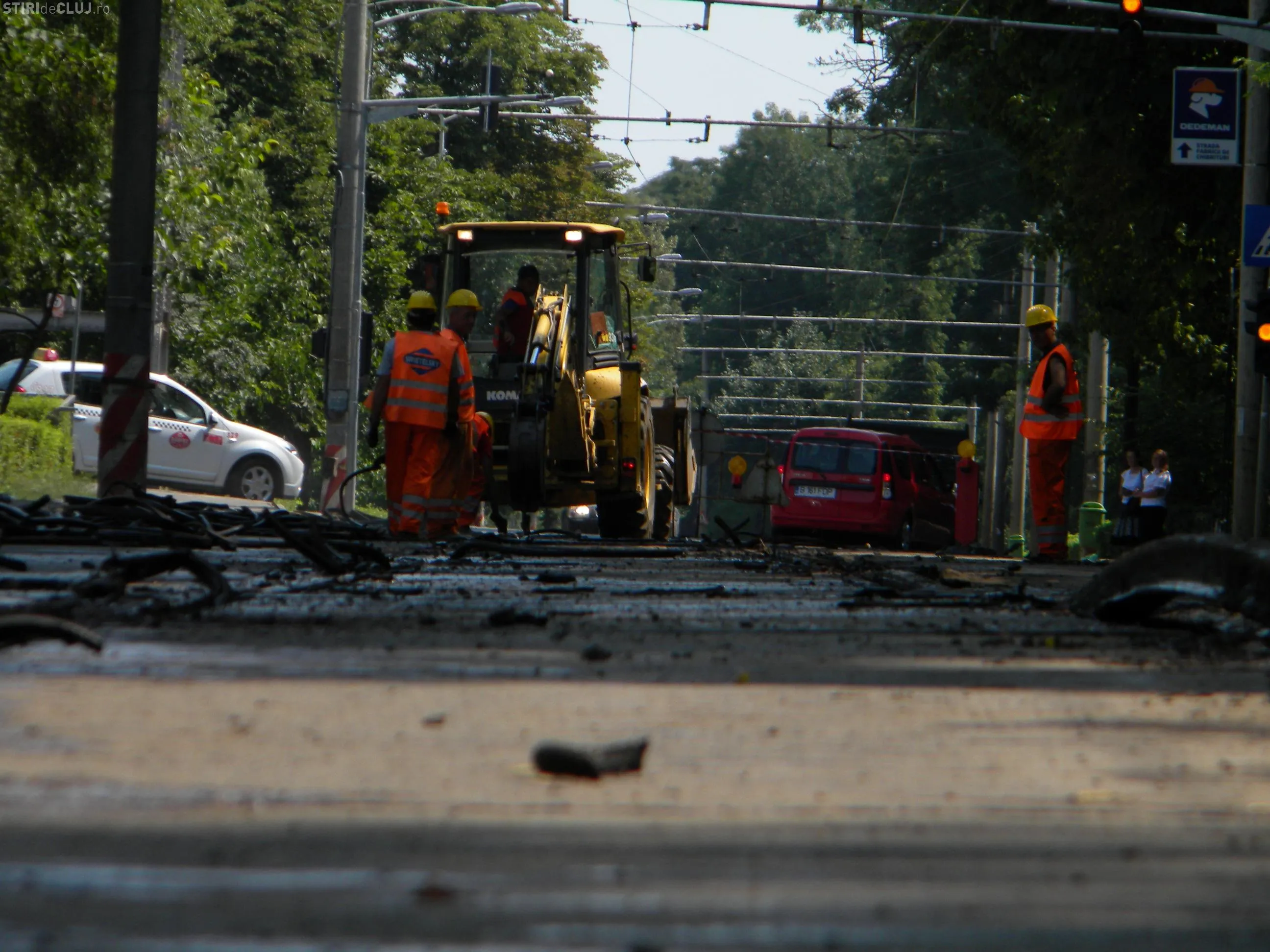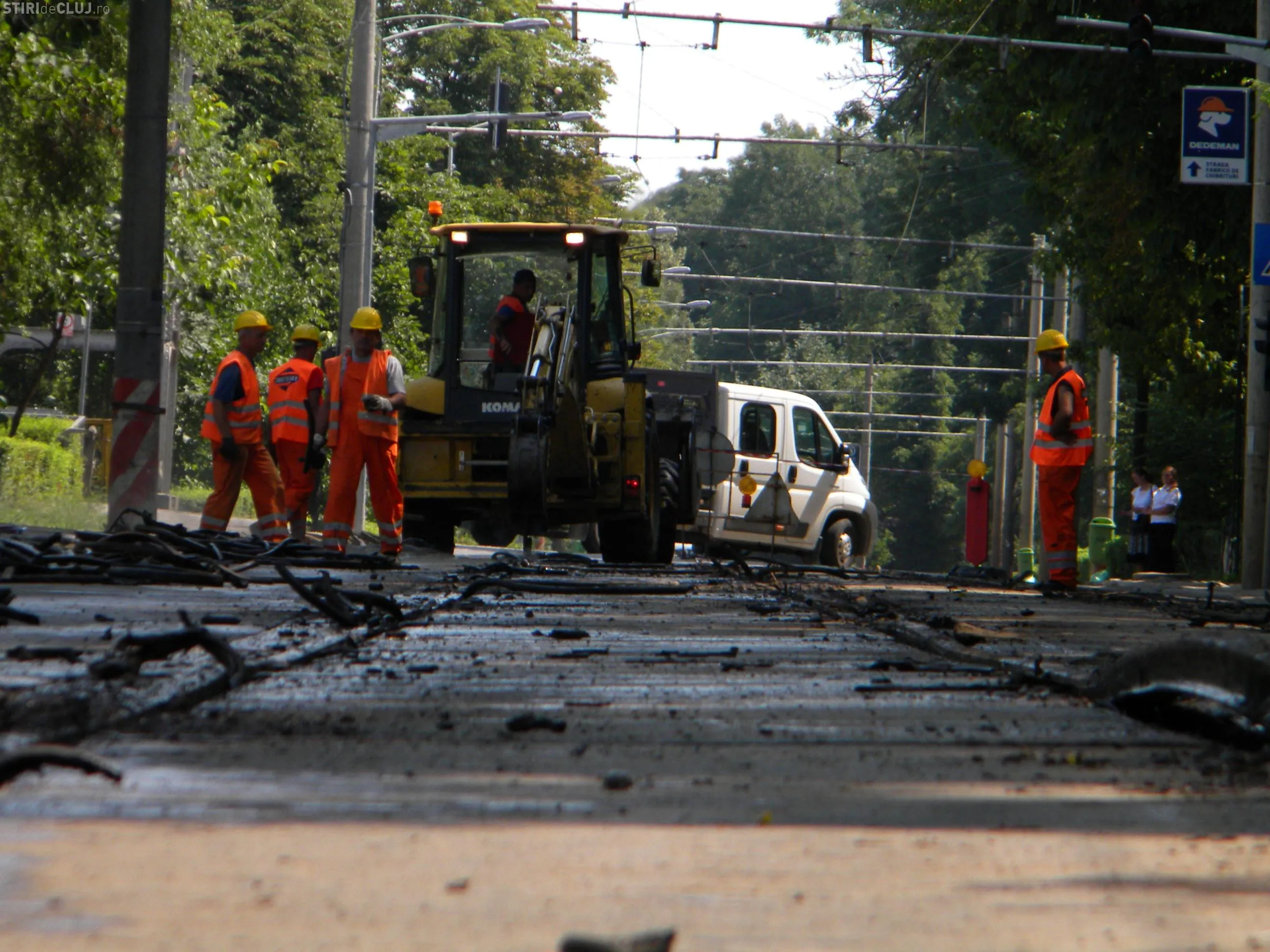 Strada Splaiul Independentei, intre intersectia cu strada George Cosbuc si podul de peste Somes din zona Hotelului Napoca, a fost inchisa traficului pe durata lucrarilor de modernizare a liniei de tramvai.