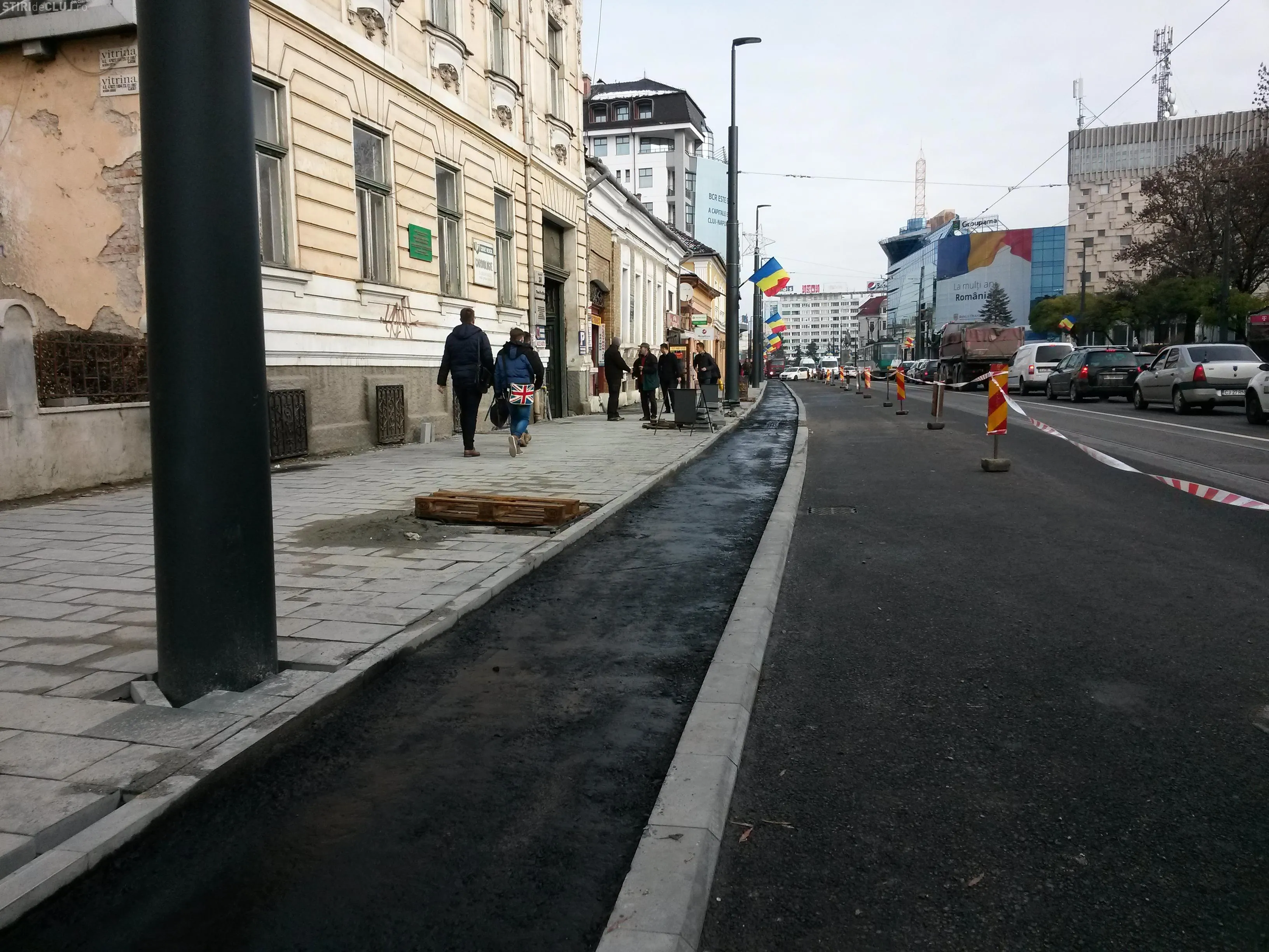 După aprecierea mea, până în 10 - 15 decembrie, terminăm strada Barițiu. Mai avem de turnat și mixtura colorată pe pista de biciclete și pavajul pe partea dreaptă, dinspre Facultatea de Construcții. Avem pistă de biciclete pe 600 de metri”, a spus Corneliu Dimitriu, manager de proiect Kiat Grup.