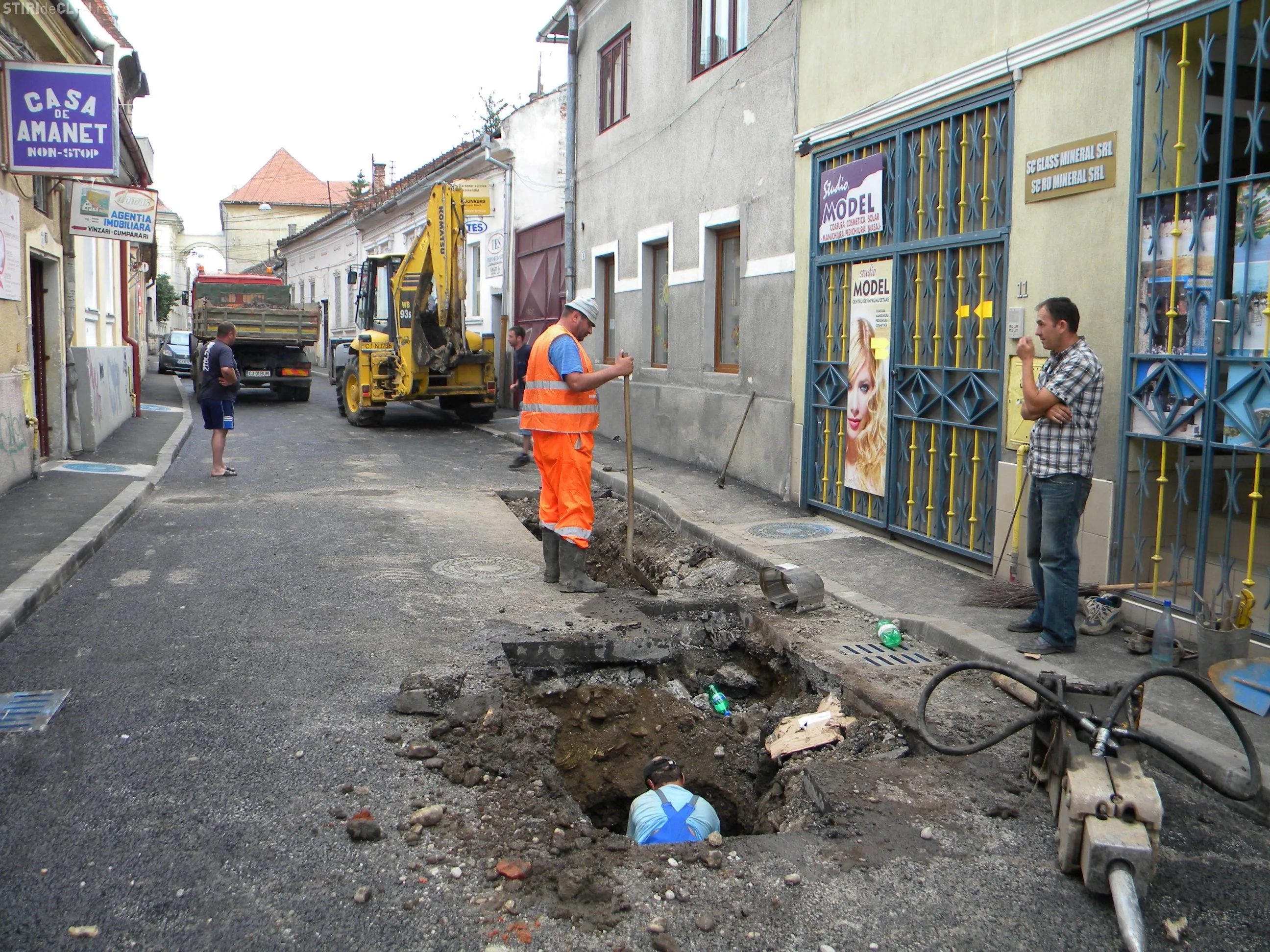 Strazile din zona centrala a orasului sunt in reparatii de circa 3 saptamani, iar pe David Ferenc lucrarea a fost terminata chiar astazi, cand conducta de apa s-a spart in doua locuri.
