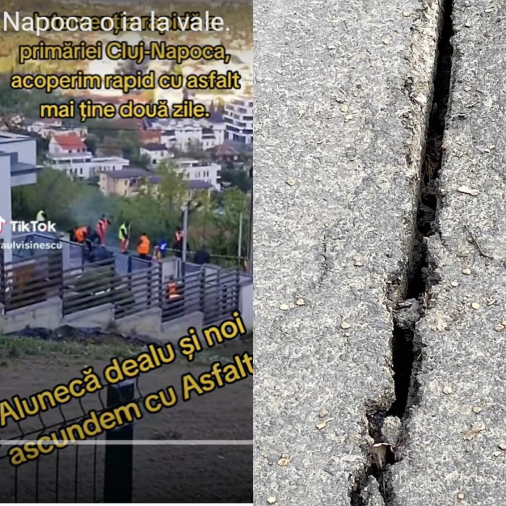 Strada Uliului din Cluj a luat-o iar la vale. Ca să acopere crăpăturile, autoritățile au turnat rapid asfalt. A doua zi a crăpat asfaltul -VIDEO