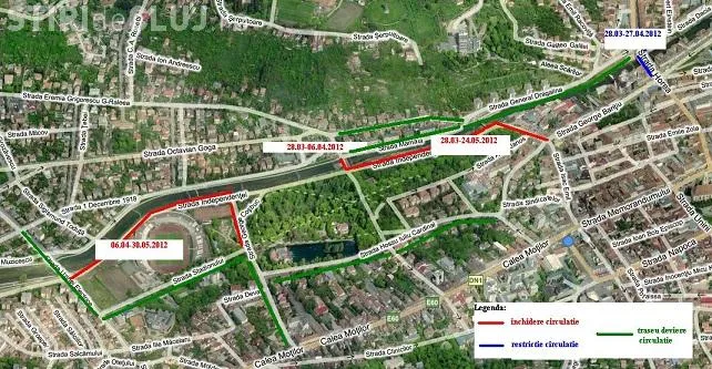 In perioada 06.04.2012 – 30.05.2012 se va inchide circulatia auto pe Splaiul Independentei intre str. G. Cosbuc si Pod Garibaldi. in perioada lucrarilor se va interzice accesul autovehiculelor si pe strada G.Cosbuc, pe tronsonul cuprins intre aleea Stadion si Splaiul Independentei, cu exceptia celor care participa la efectuarea lucrarilor la linia de tramvai si la amenajarea Parcului Central.