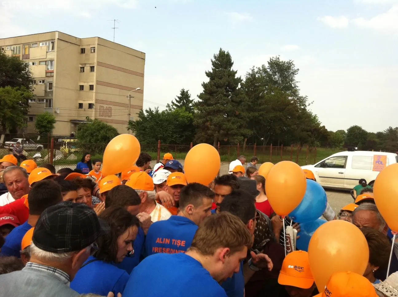 Sustinatorii PDL s-au imbulzit pentru a primi tricouri si baloane VIDEO