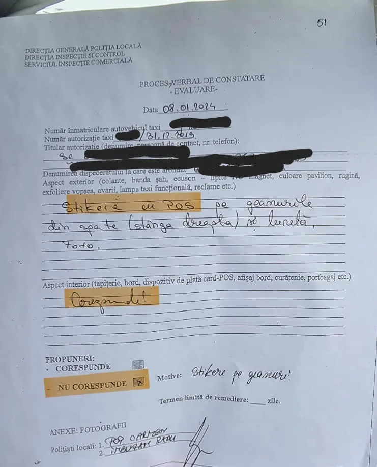 Taximetriștii clujeni se simt abuzați de Poliția Locală. Acum s-a ajuns la episodul stickerelor - FOTO