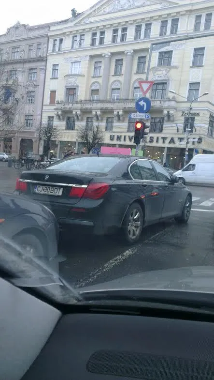 ”Va trimit o poza cu un nesimtit cu BMW, care zilnic de cateva LUNI DE ZILE, parcheaza ca un nesimtit imediat sub semafor in buza trecerii de pietoni si pe interzis toate astea chiar in buricul centrului piata unirii intersectie cu Napoca, vis a vis cu Vertigo.