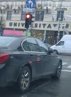 Un clujean a surprins în repetate rânduri aceeași mașină de lux, un BMW, parcat chiar sub semaforul din Piața Unirii.