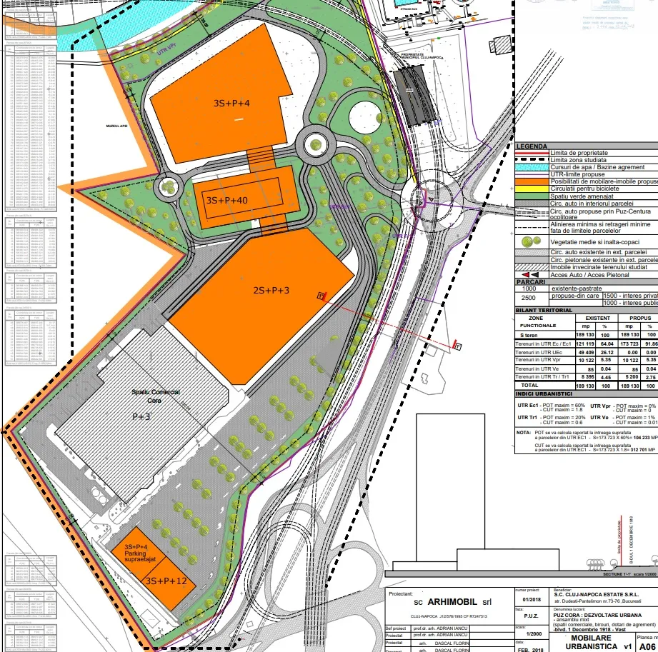 Obiectul principal al Planului Urbanistic Zonal il constituie realizarea unui ansamblu mixt (cu functiuni comerciale, mall, birouri, servicii de interes public – hotel, parking, spatii pentru loisir), pe terenurile situate in Cluj-Napoca, Bd. 1 Decembrie 1989 in zona Cora, identificate prin nr. CF/ nr. Cad.: 257051, 257052, 257011, 257088, 256982, 257013, 256978, 257018, 250241 si insumeaza o suprafata de peste18 hectare”, se arată în PLAN URBANISTIC ZONAL – dezvoltare urbană – ansamblu mixt Bd. 1 decembrie 1918 nr. 142 (zona Cora).