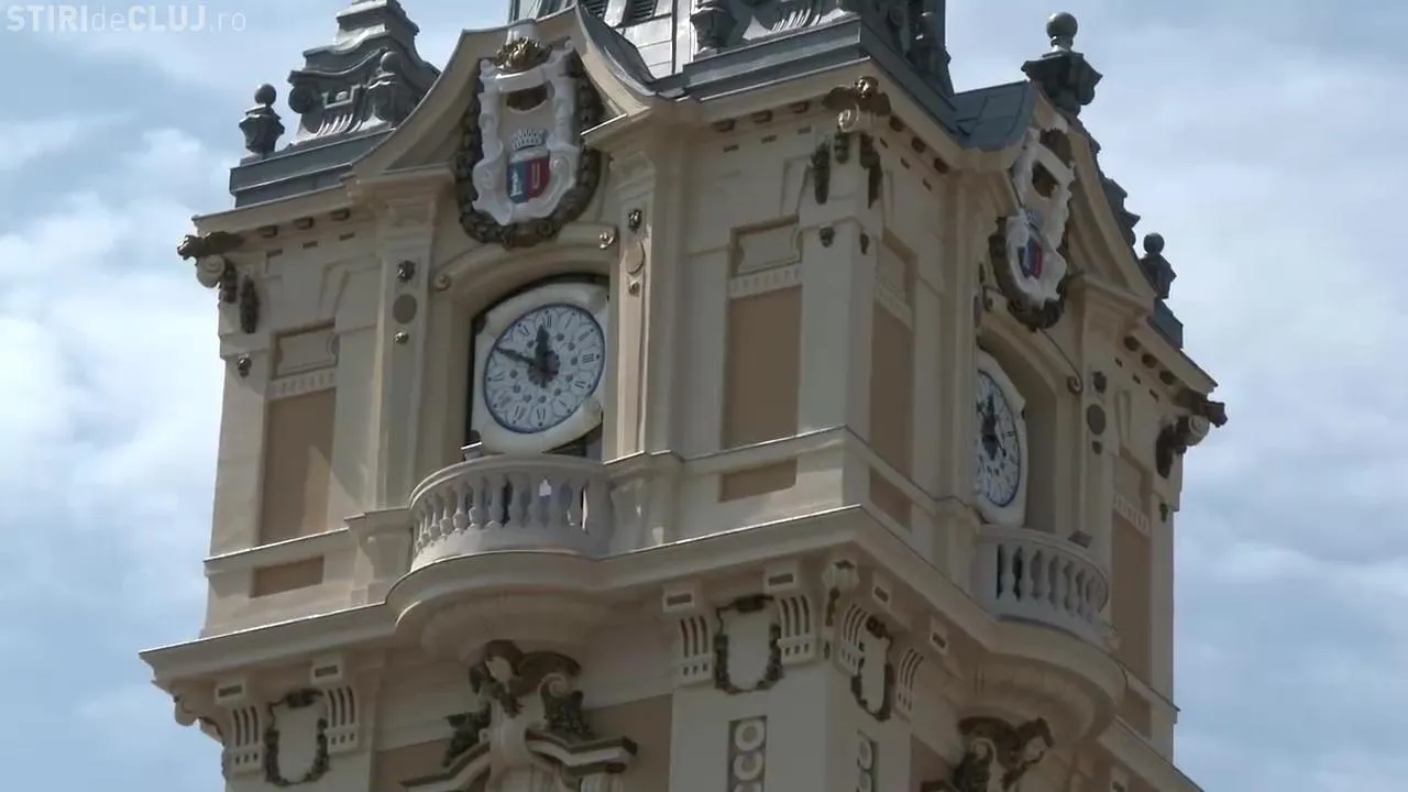 Turnul cu ceas de la Primăria Cluj-Napoca a fost pus în funcțiune, după ce ani de zile a fost stricat.