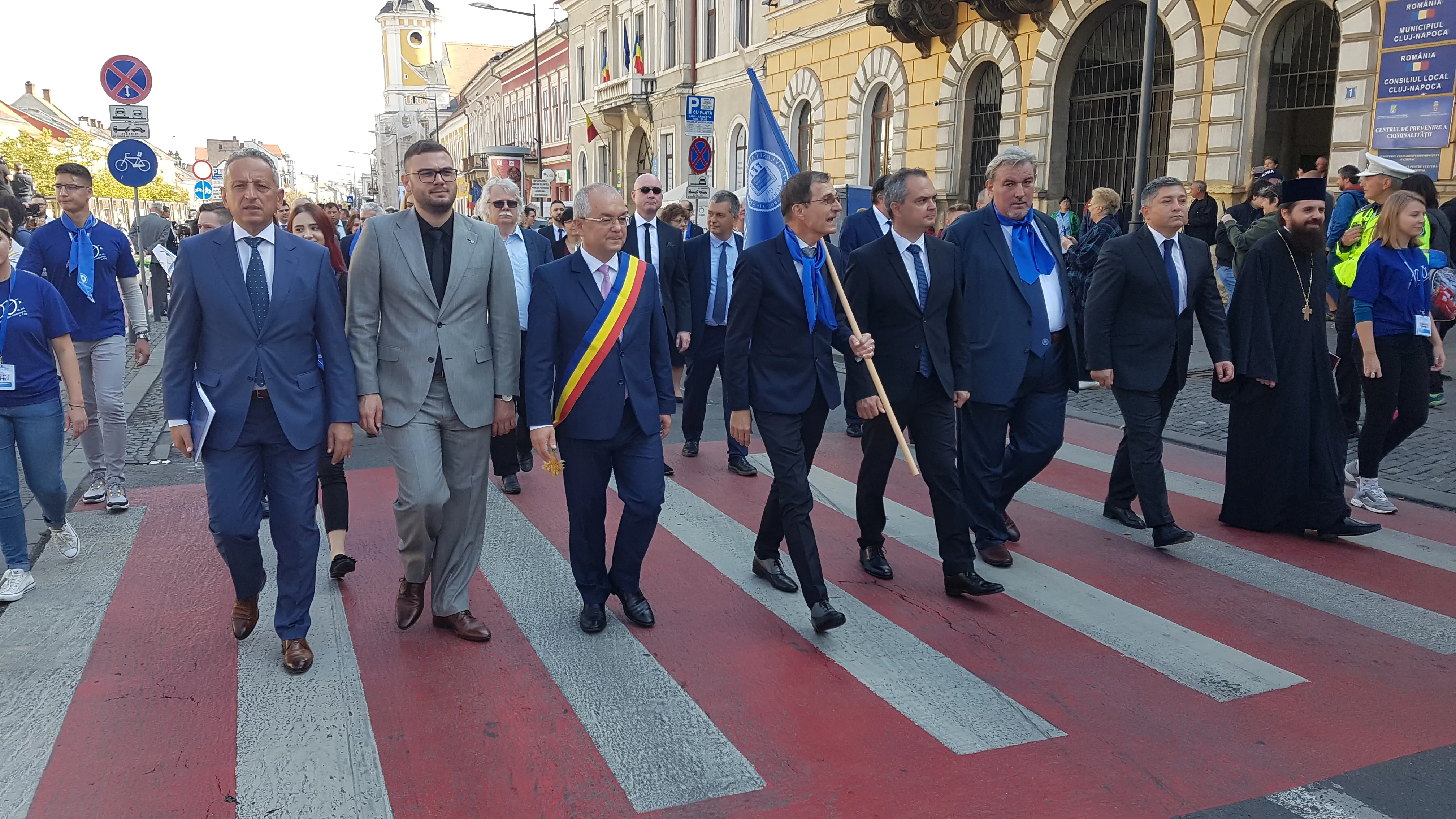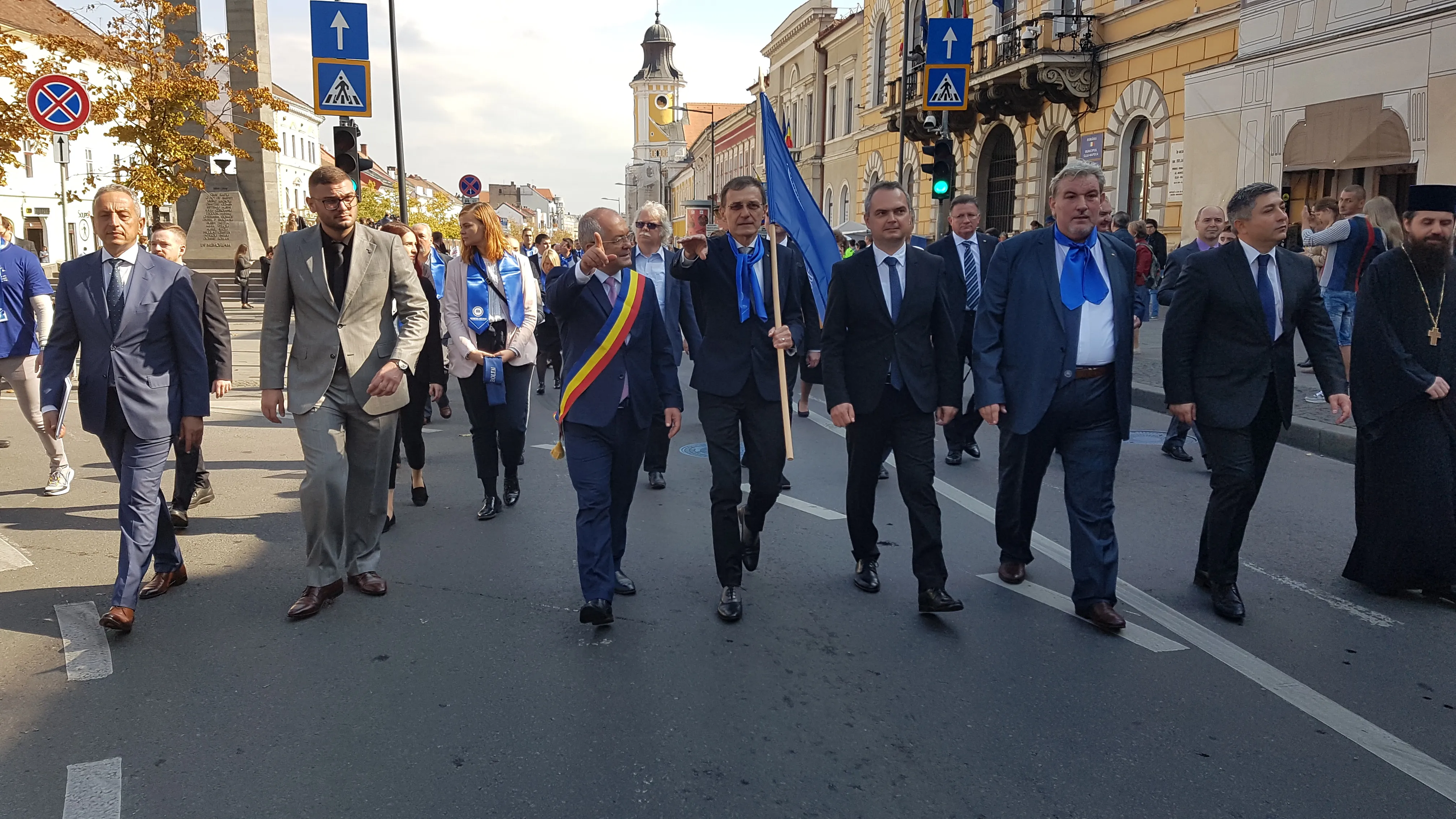 În prima linie a marșului au fost rectorul UBB, profesor Ioan Aurel Pop, profesorul Ioan Chirilă, prefectul Aurel Cherecheș, primarul Emil Boc și președintele CJ Cluj, Alin Tișe.