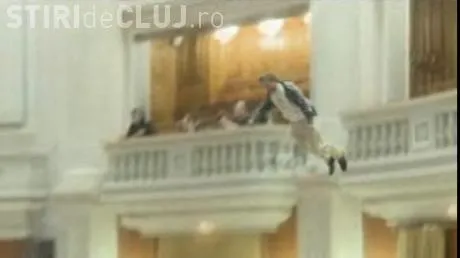 Angajatul TVR, Adrian Sobaru, s-a aruncat de la balconul Parlamentului in timpul discutarii motiunii de cenzura inaintata de Opozitie.