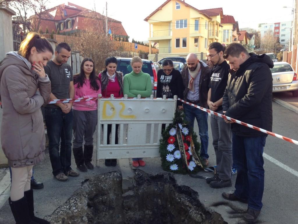 Am decis ca cel mai bine e sa depun o coroana de flori la capataiul strazii Caisului, cea care a fost odata proaspat asfaltata si acum e distrusa de E-On Gaz”, a scris Liviu Alexa pe blogul său.