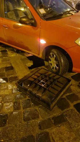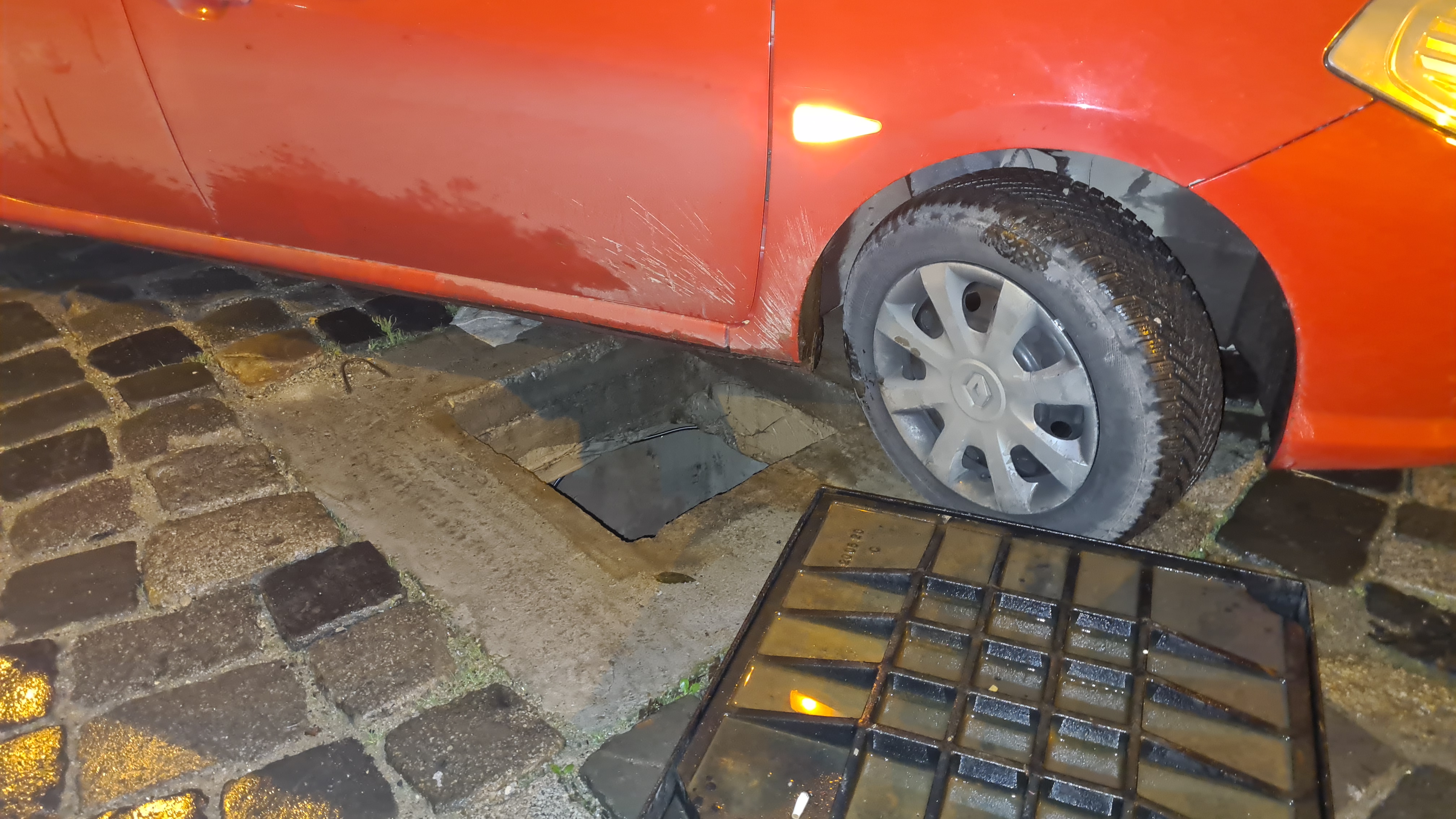 Incidentul s-a petrecut pe strada Napoca. ”Am intrat pe strada Fortăreței, unde era un canal acoperit doar de forma. Am dat cu roata în el și am avariat janta, brațul și s-a spart și anvelopa”, ne-a relatat Mihai P.