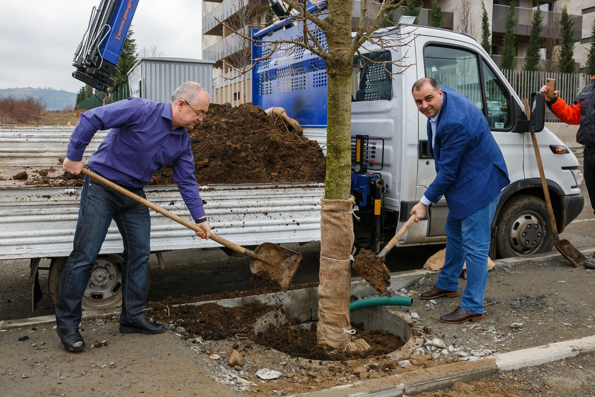 Un lector de la UBB Cluj ”șterge” pe jos cu ”populistul” Boc, care plantează copaci electorali pe trotuar, în cămașă și fără cască - FOTO