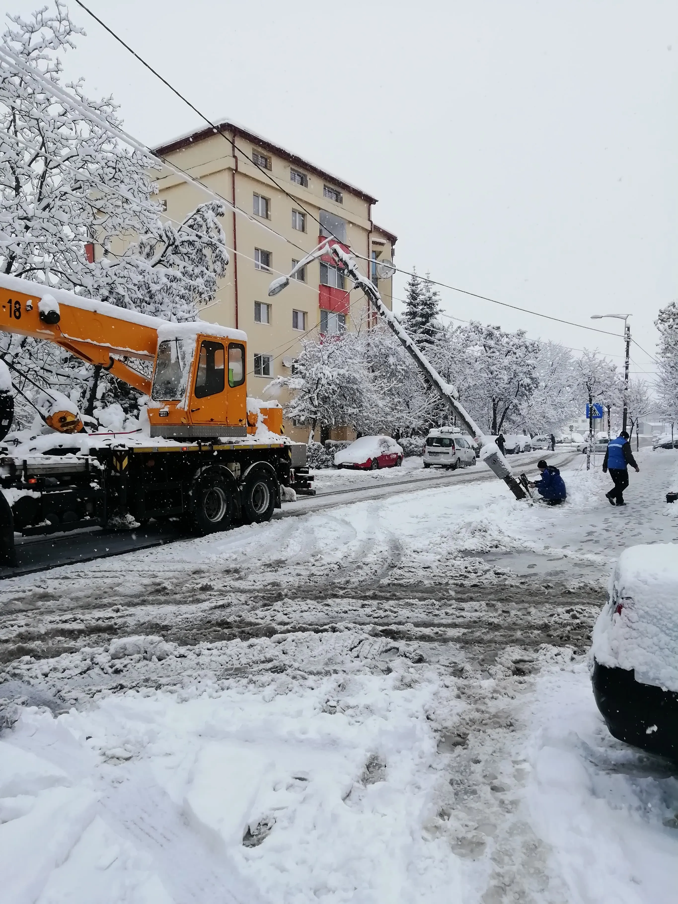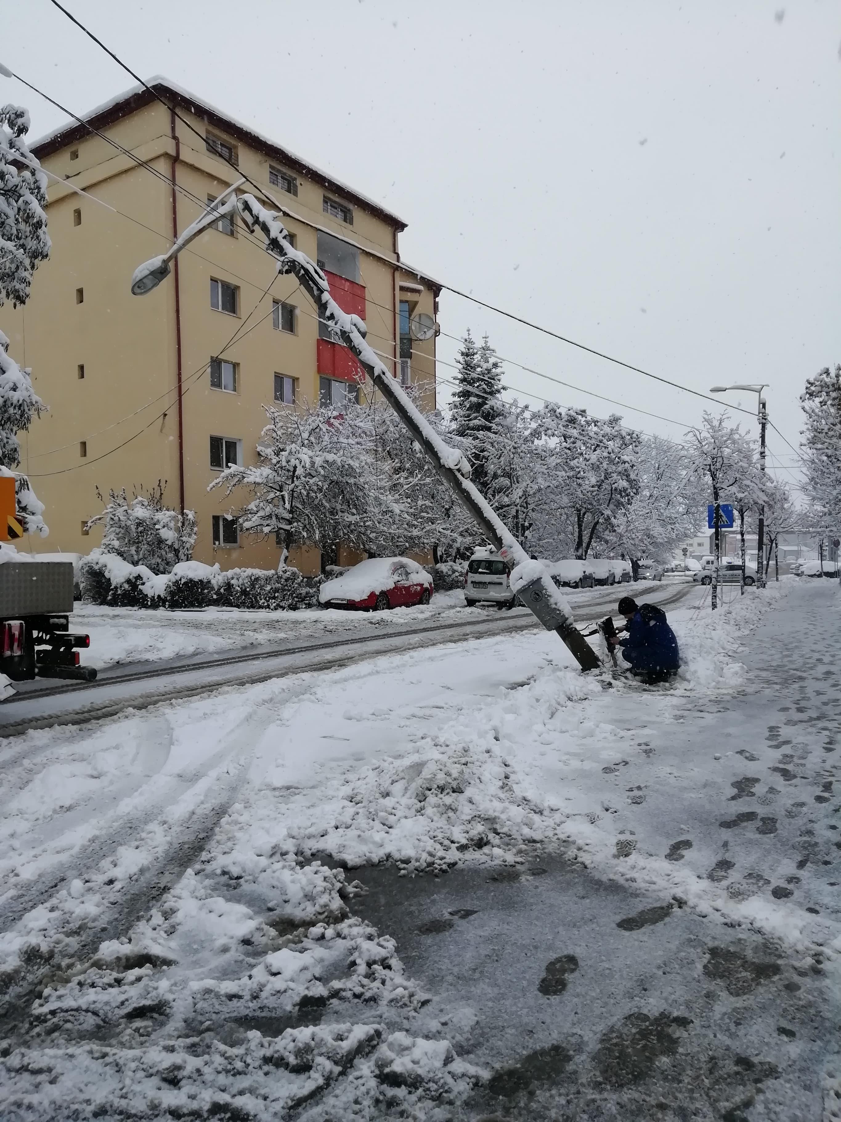 Un stâlp a căzut pe strada Fabricii de Zahăr din cauza zăpezii - FOTO