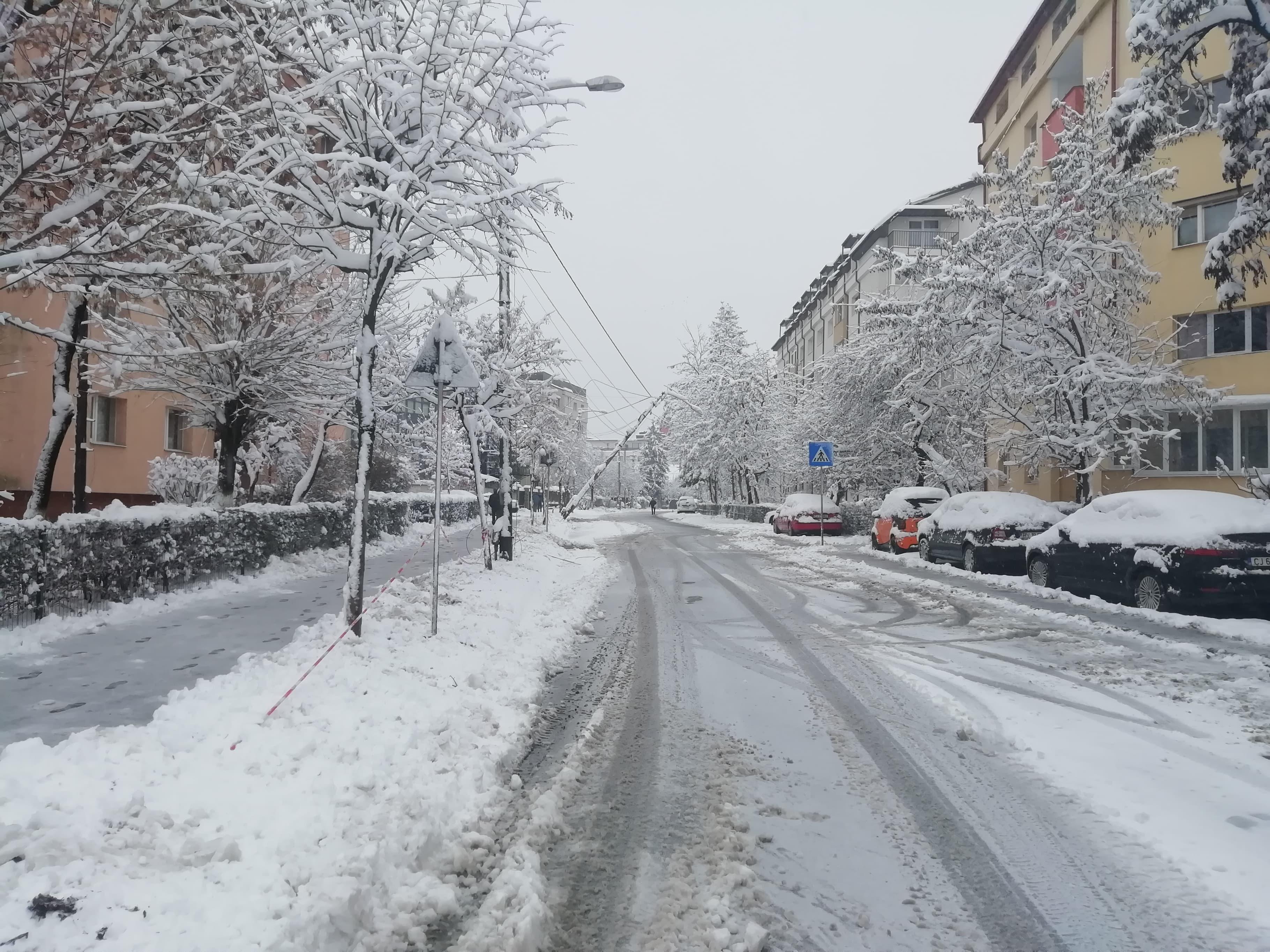 Pe strada Fabricii de Zahăr un stâlp a căzut din cauza zăpezii, iar echipajele de intervenție au fost chemate de clujeni.