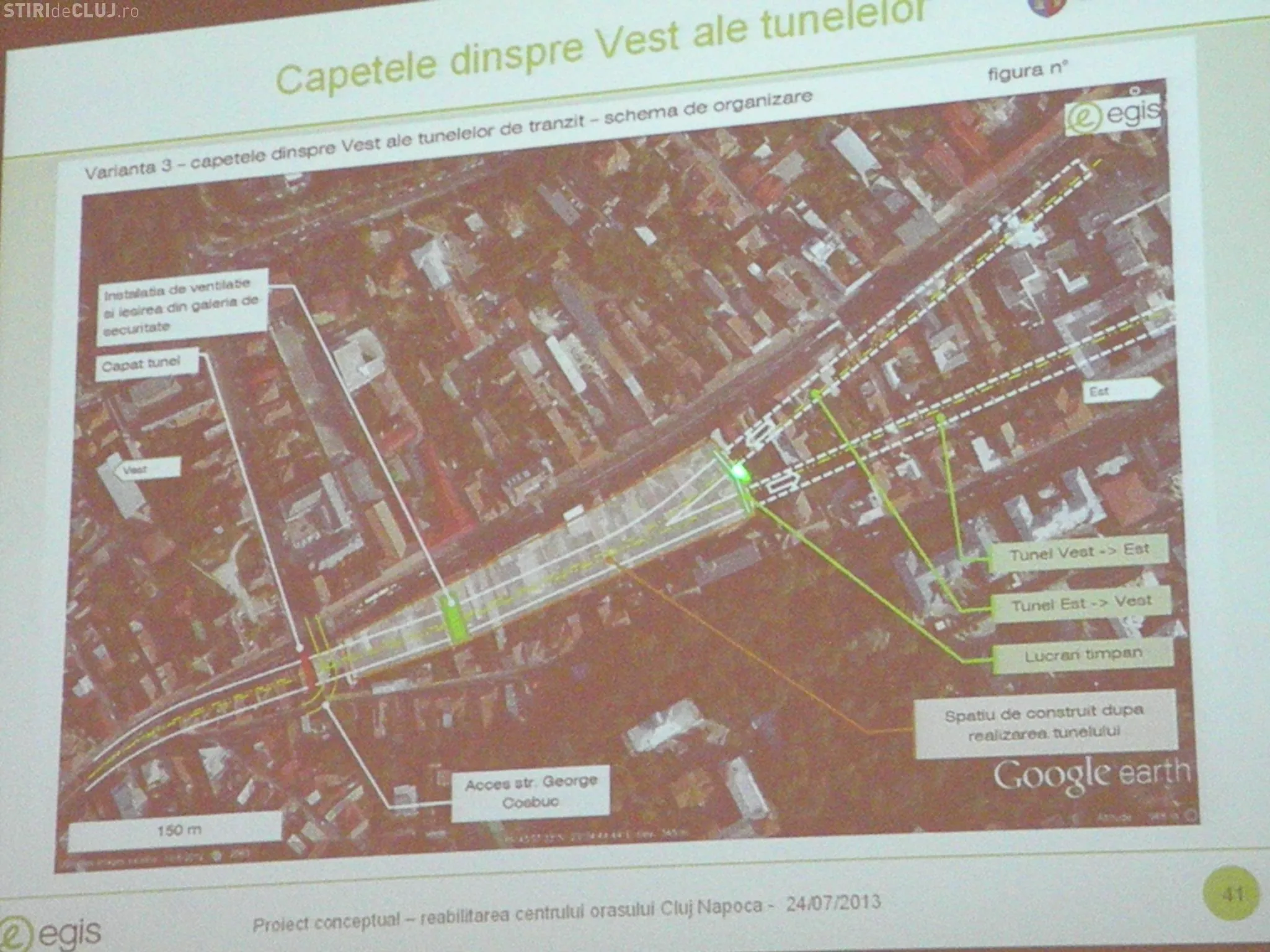 Construcția unui tunel pe sub Cluj-Napoca, realizat prin săpătură subterană, ar presupune demolarea unor clădiri pe o suprafață de 400 de metri pătrați, la intrare pe strada Clinicilor.