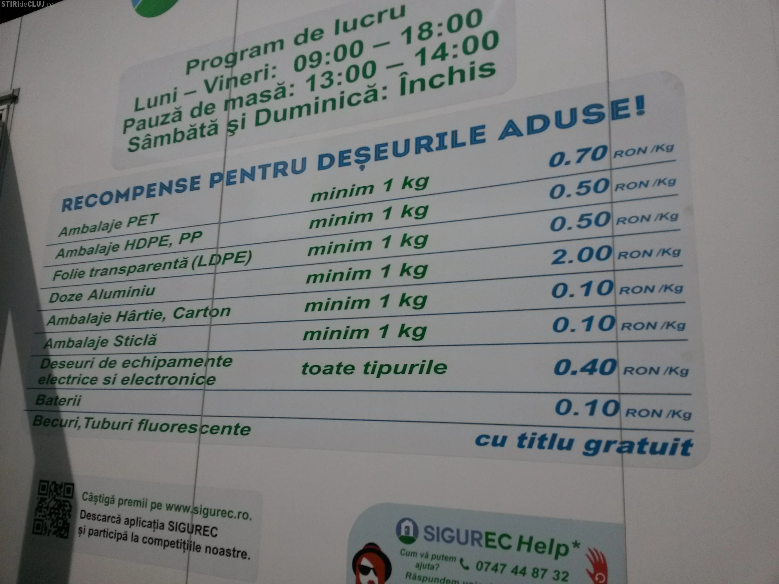 Cei care doresc, pot preda Pet -uri, doze de aluminiu, hârtie, sticlă, deșeuri electronice, baterii și becuri.