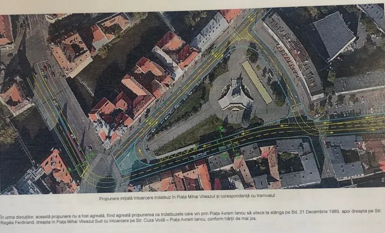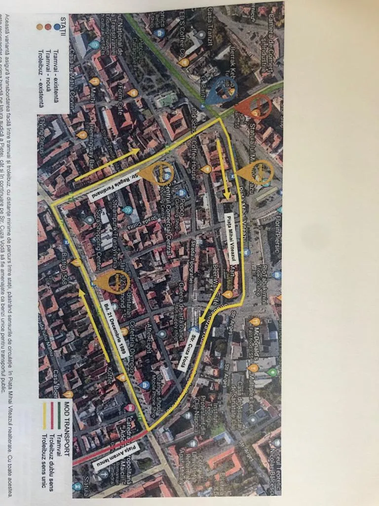 De asemenea, în Piața Mihai Viteazu se vor face modificări în trafic, pentru că șoferii și transportul public trebuie să circule pe undeva. Se propune ca prin Piața Mihai Viteazu și pe strada Cuza Vodă să fie bandă dedicată de transport în comun.
