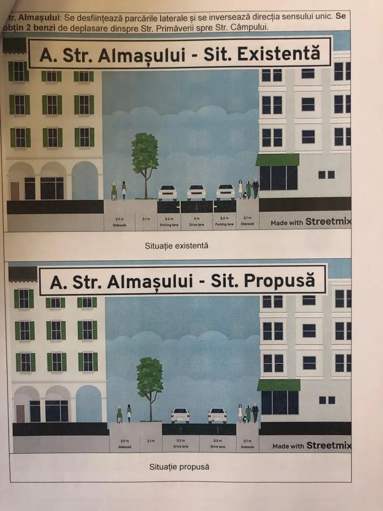 Spre exemplu, pe strada Almașului se va face legătura între strada Primăverii și strada Câmpului. Pe această stradă acum sunt parcări pe ambele margini, dar se propune ca acestea să fie desființare și să se circule pe două benzi spre strada Câmpului. Ce nu oferă Primăria este o soluție pentru cei care au mașini acolo. Strada Almașului va reprezenta o deviere pentru Calea Florești.