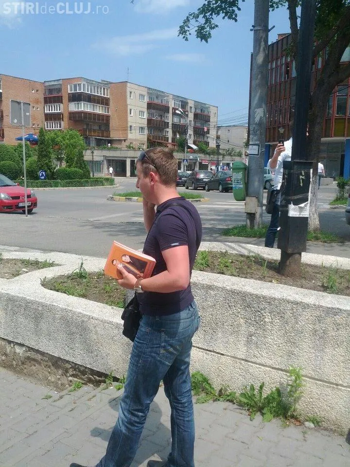 "Comicul lui Caragiale isi dezvolta valentele la Cluj. Pe ultima suta de metri, echipa de campanie a USL-ului a fost surprinsa astazi pe o strada din Cluj-Napoca, impartind materiale portocalii. Nu ne-am permis sa-i deranjam cu intrebari, insa am detectat pe reteaua de socializare Facebook ce contineau acele flyere. Intrebare: CREDETI CA ALEGATORII SUNT ATRASI DE O ASEMENEA STRATEGIE DE PROMOVARE?", ne-a scris Adina.
