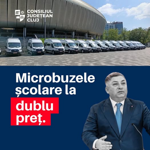 Consiliul Județean Cluj a cumpărat 59 de microbuze școlare pentru transportul copiilor din localitățile județului. Primele 34 au costat circa 170 000 euro/bucată+TVA, iar următoarele 25 au fost mult mai ieftine, 135 000 euro/bucată+TVA.