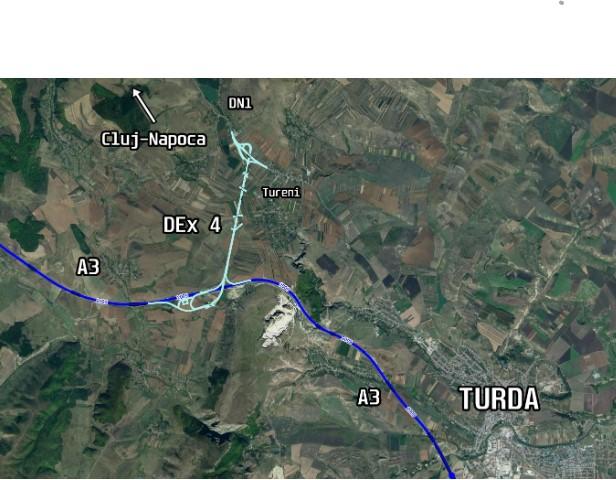Drumul Expres DEx4, care va lega Autostrada A3 de Drumul Național DN1 în zona localității Tureni, este aproape finalizat și urmează să fie deschis circulației în luna iulie. Construit de asocierea Dimex-CON-A, acest segment rutier are o lungime de aproximativ cinci kilometri și are ca scop principal fluidizarea traficului în zona Turda, facilitând accesul direct al șoferilor spre Cluj-Napoca.
