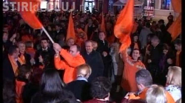 Victoria lui Basescu sarbatorita in strada la Cluj