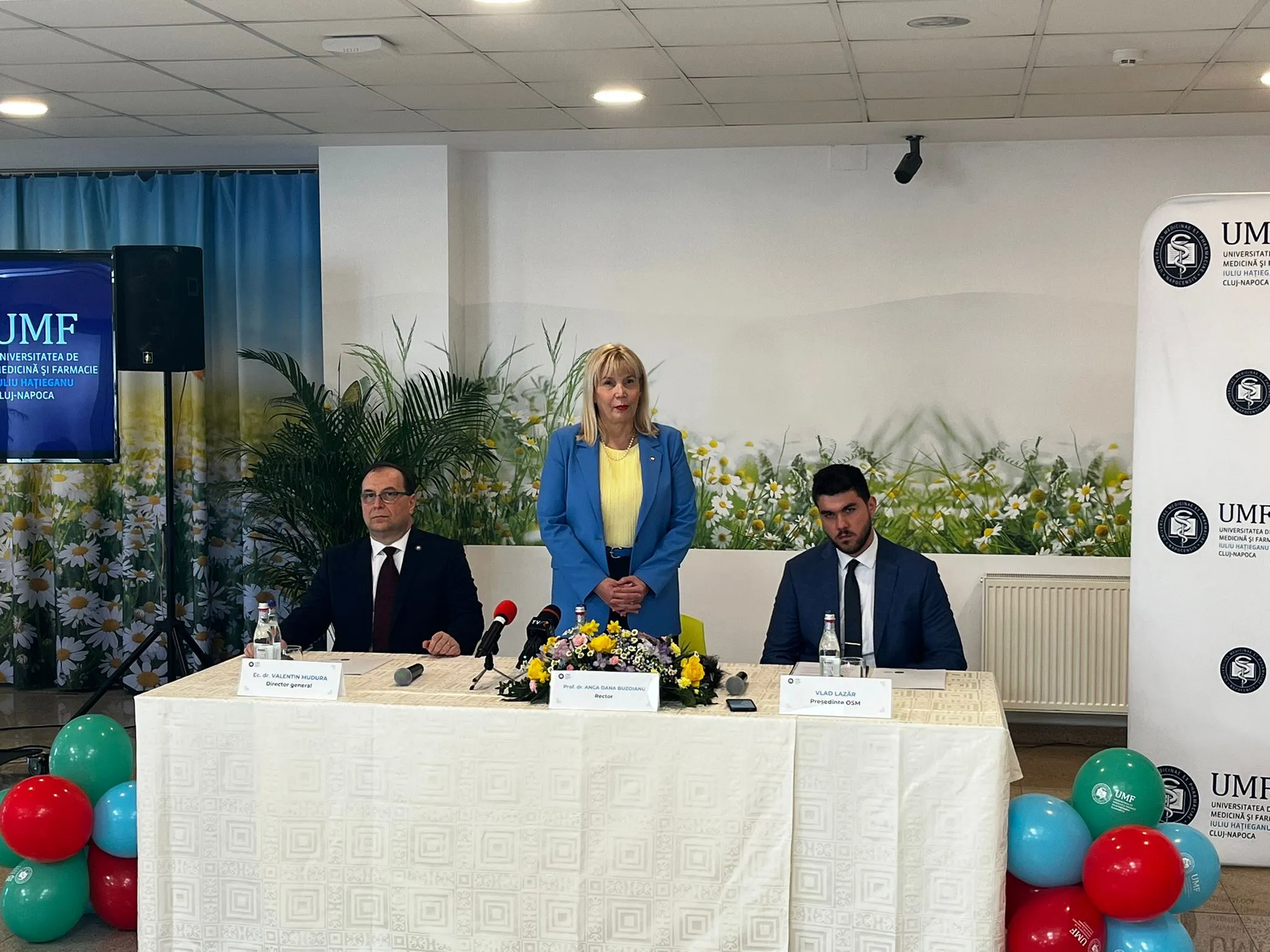 ”Împlinim o promisiune făcută acum trei ani, la preluarea mandatului și pe care am reușit să o ducem la bun sfârșit. Este o cantină modernă, care va spori capacitatea de servire a mesei și care va veni în sprijinul studenților și colegilor noștri. Este un ajutor pentru studenții care nu mai sunt nevoiți, de acum, să parcurgă drumul la cantina de pe strada Victor Babeș și apoi înapoi la cursuri, ci pot lua masa în zona unde au ore. În cadrul strategiei noastre pentru creșterea calității activității universitare, pe primul loc se află comunitatea academică, studenții și cadrele didactice. Pe lângă activitățile de educație și cercetare pe care le întreprindem în cadrul universității, trebuie să avem grijă și de starea de bine a studenților și a colegilor noștri, iar masa reprezintă un aspect foarte important”, a transmis prof. dr. Anca Dana Buzoianu, rectorul Universității de Medicină și Farmacie „Iuliu Hațieganu” Cluj-Napoca.