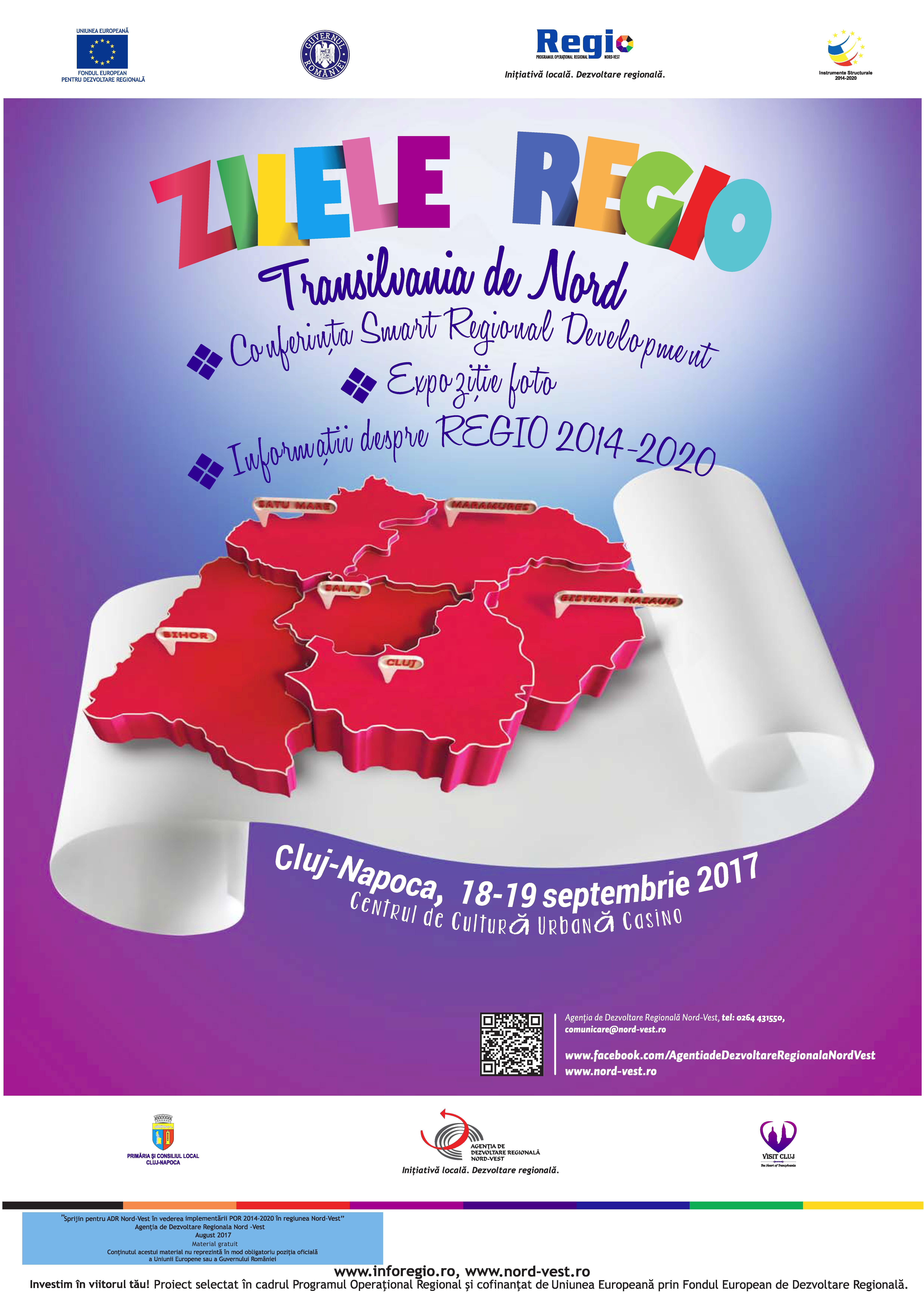 Agenţia de Dezvoltare Regională Nord-Vest organizează, alături de cele mai importante instituţii la nivel european, naţional şi regional, Zilele REGIO 2017, în 18-19 septembrie 2017, în Cluj-Napoca.