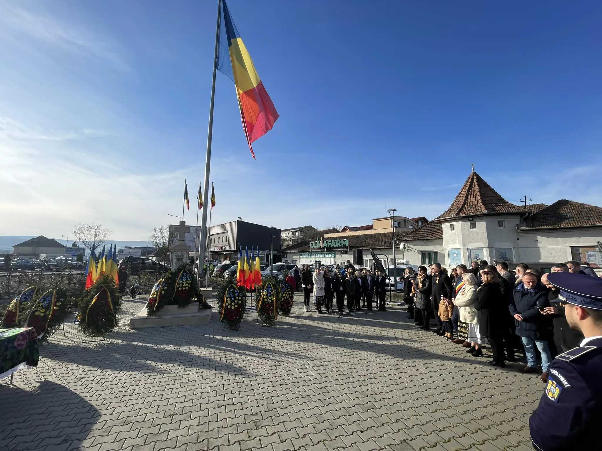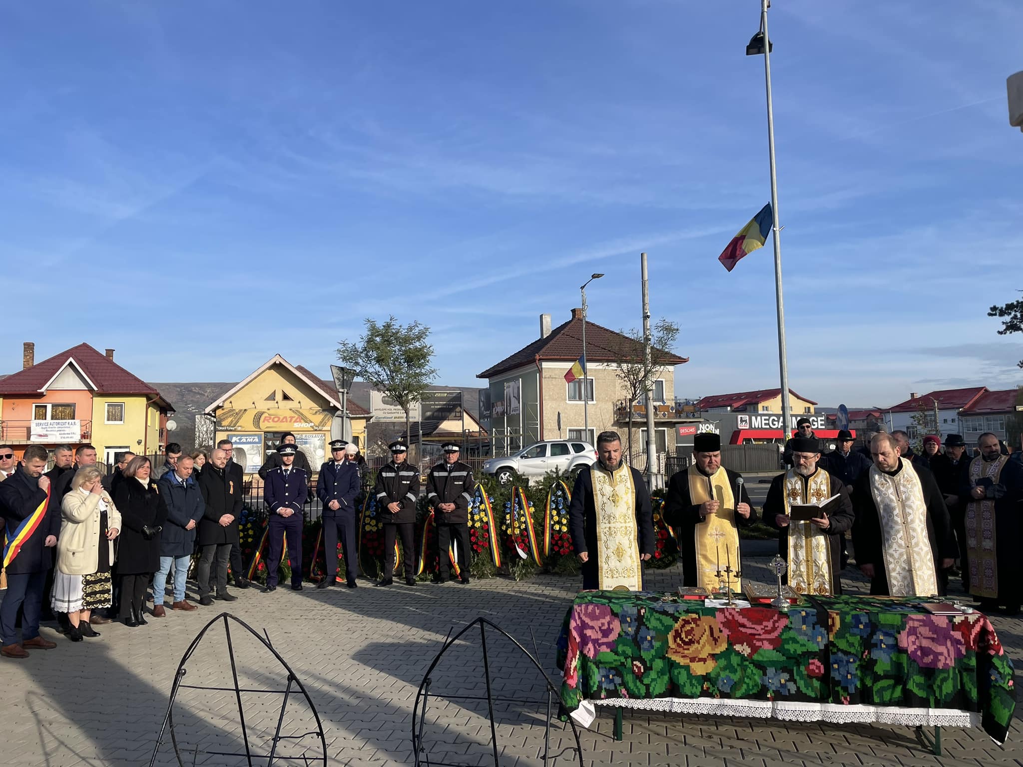 Oficialitățile au depus coroane de flori și au asistat la o slujbă religioasă.