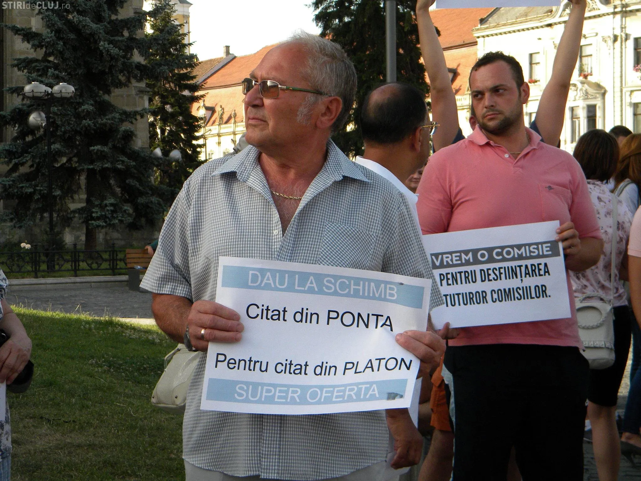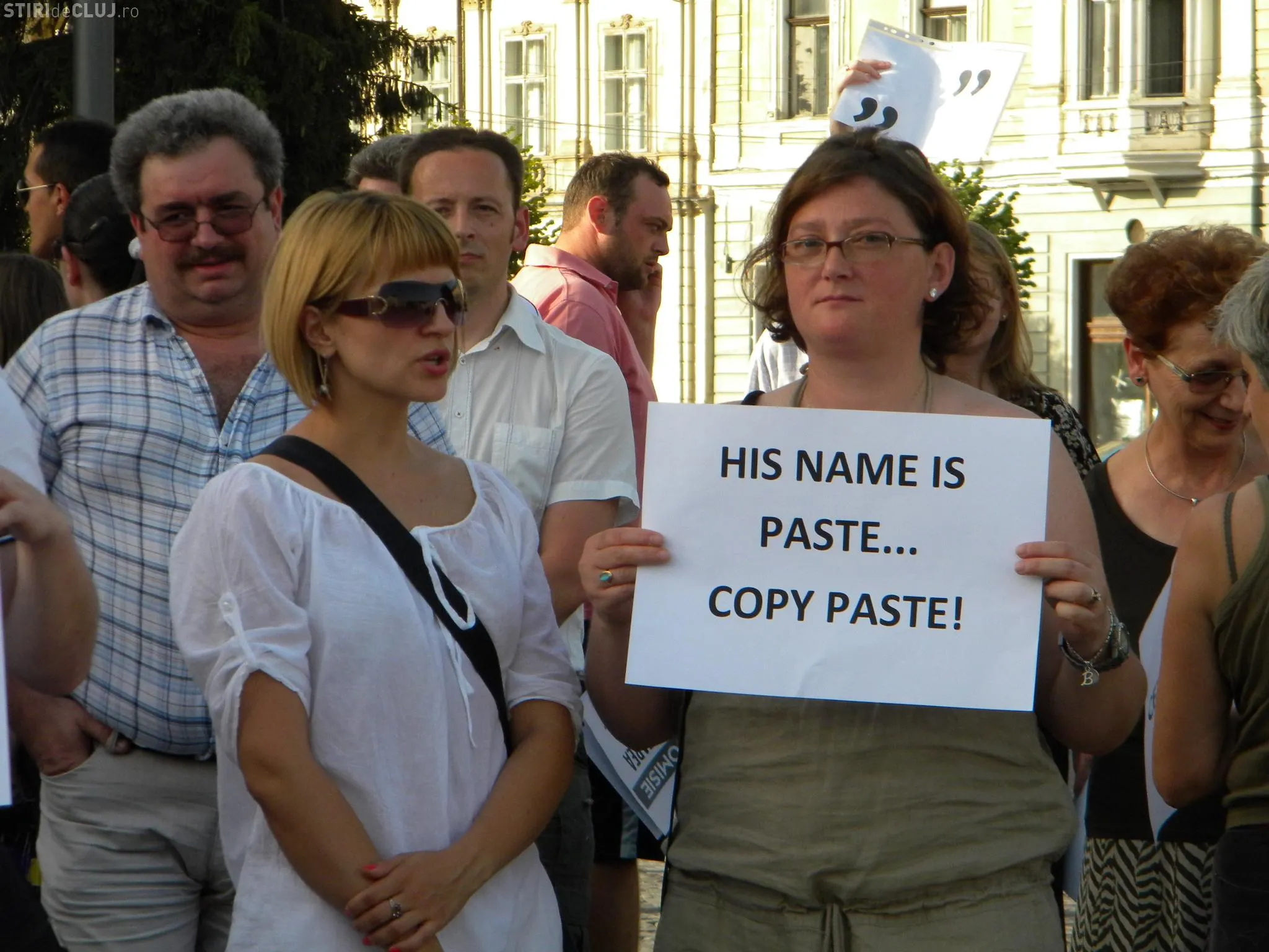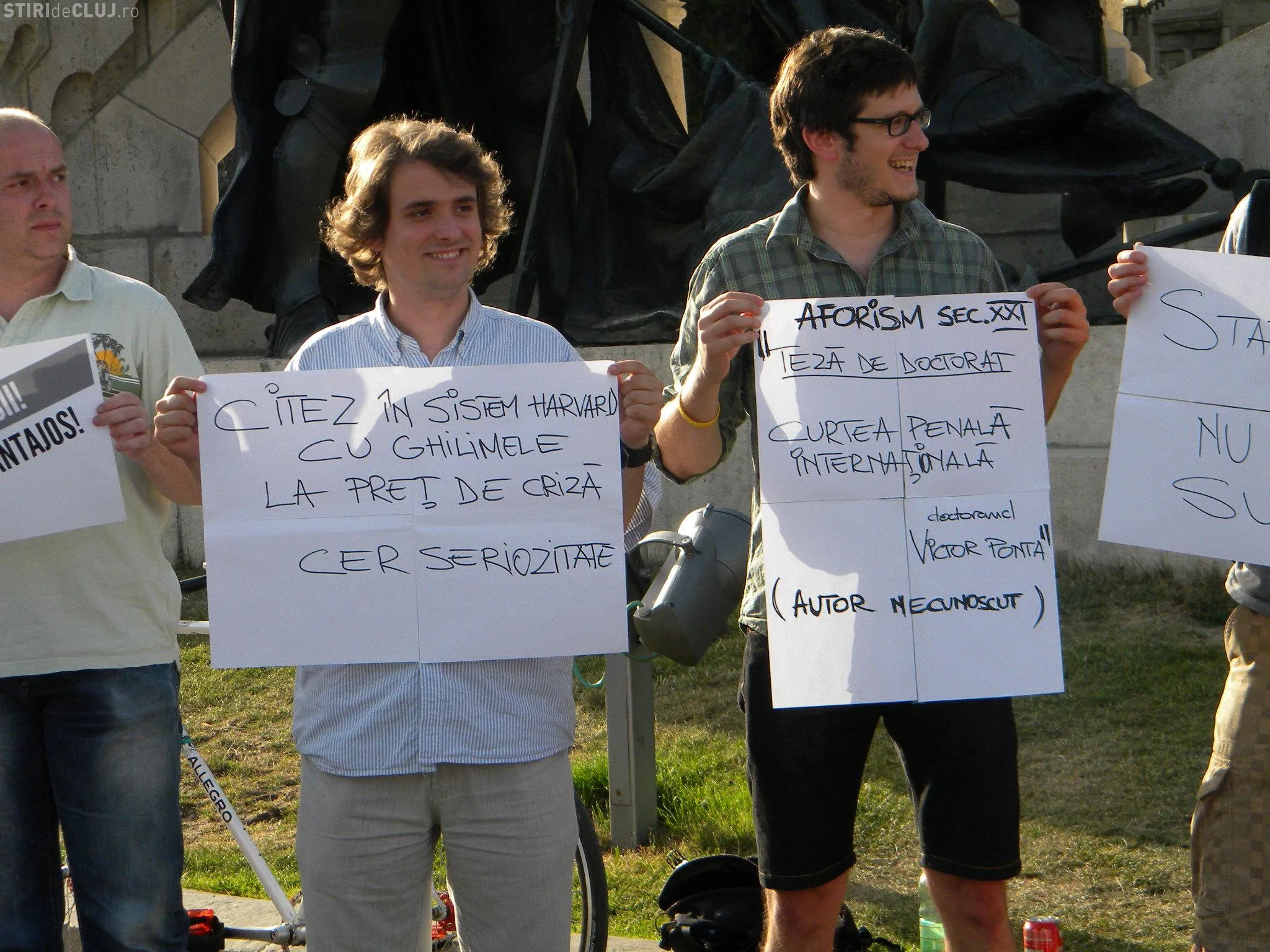 Protest ANTI Ponta în Piata Unirii! Clujenii au adus o imprimantă pentru ”doctorate la minut” VEZI FOTO