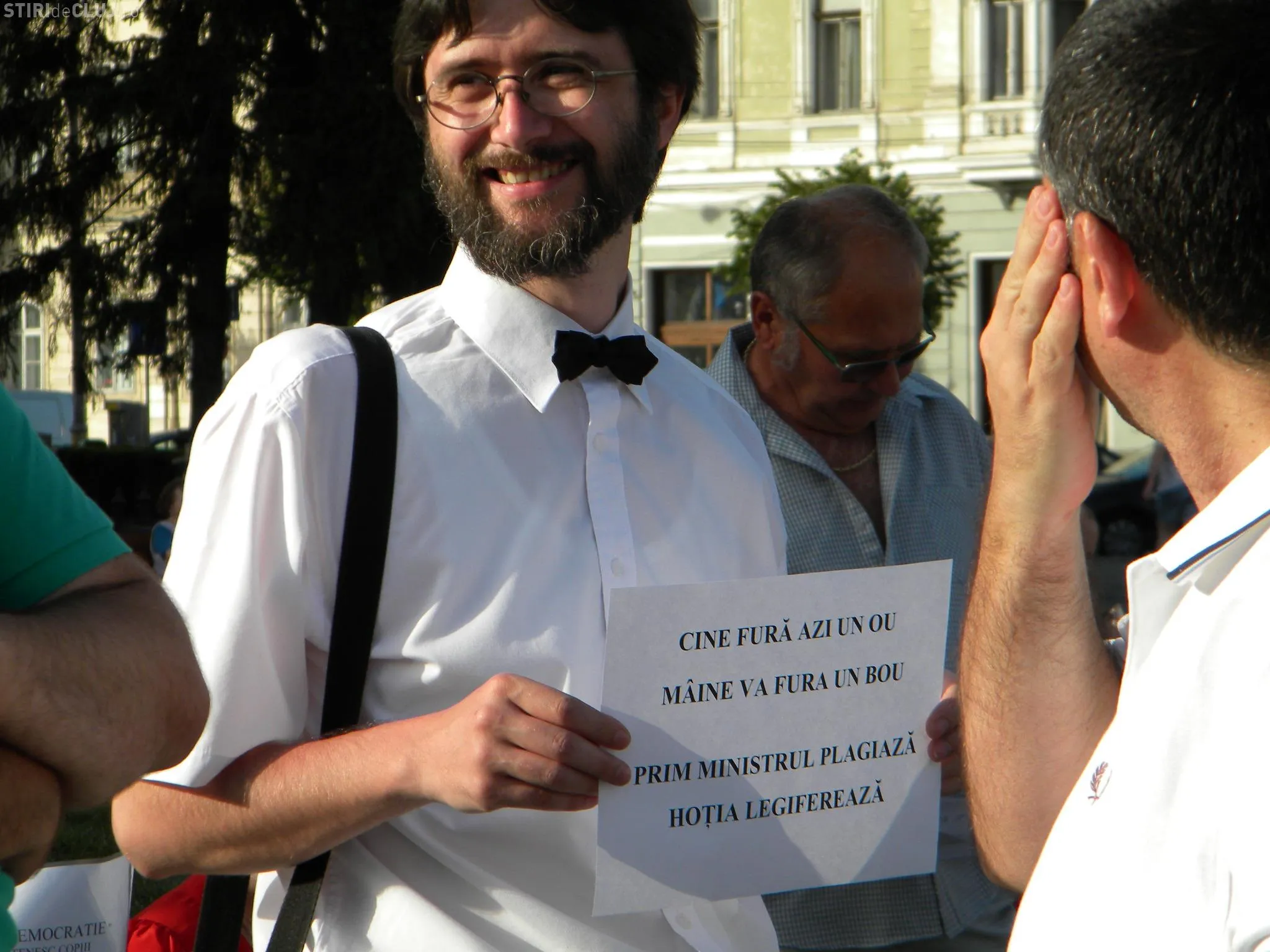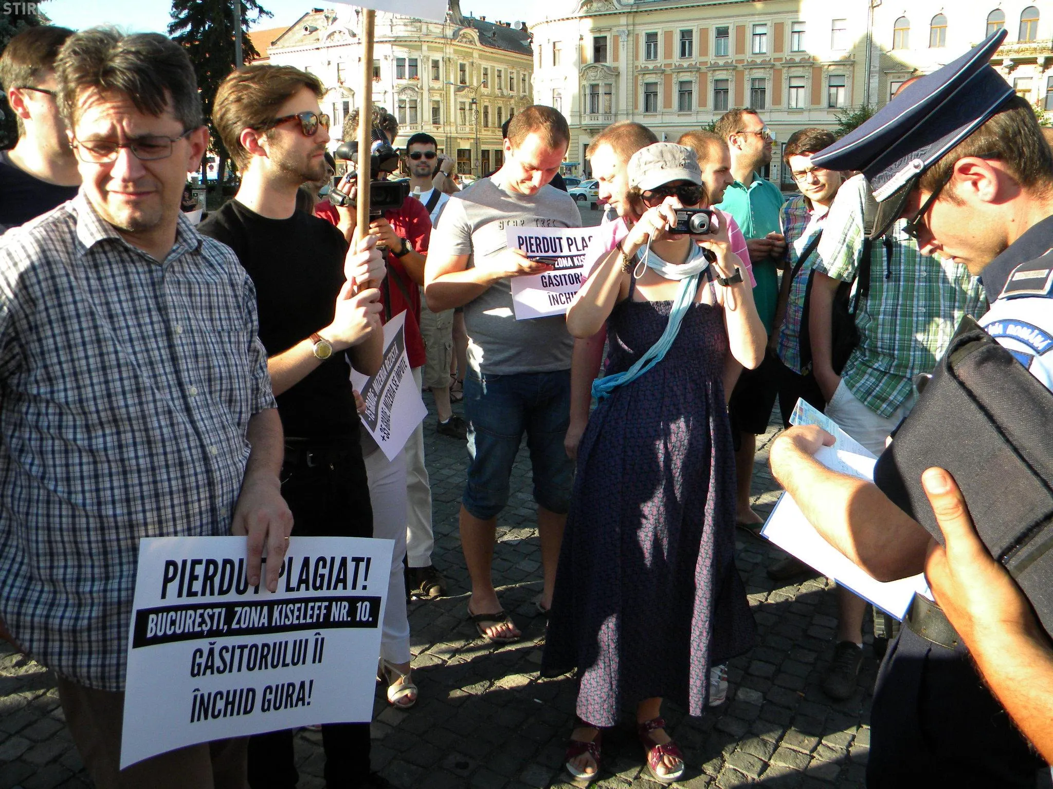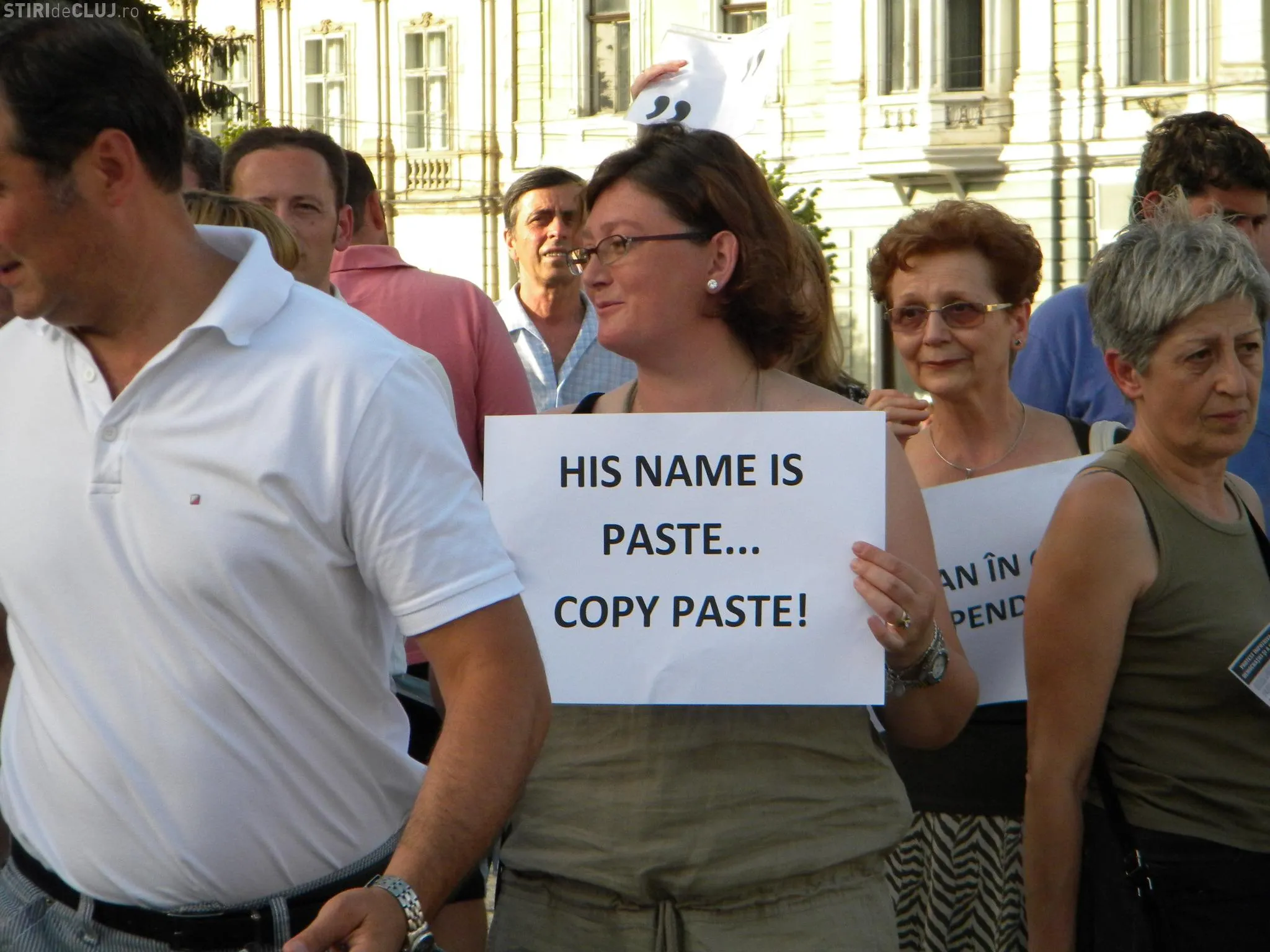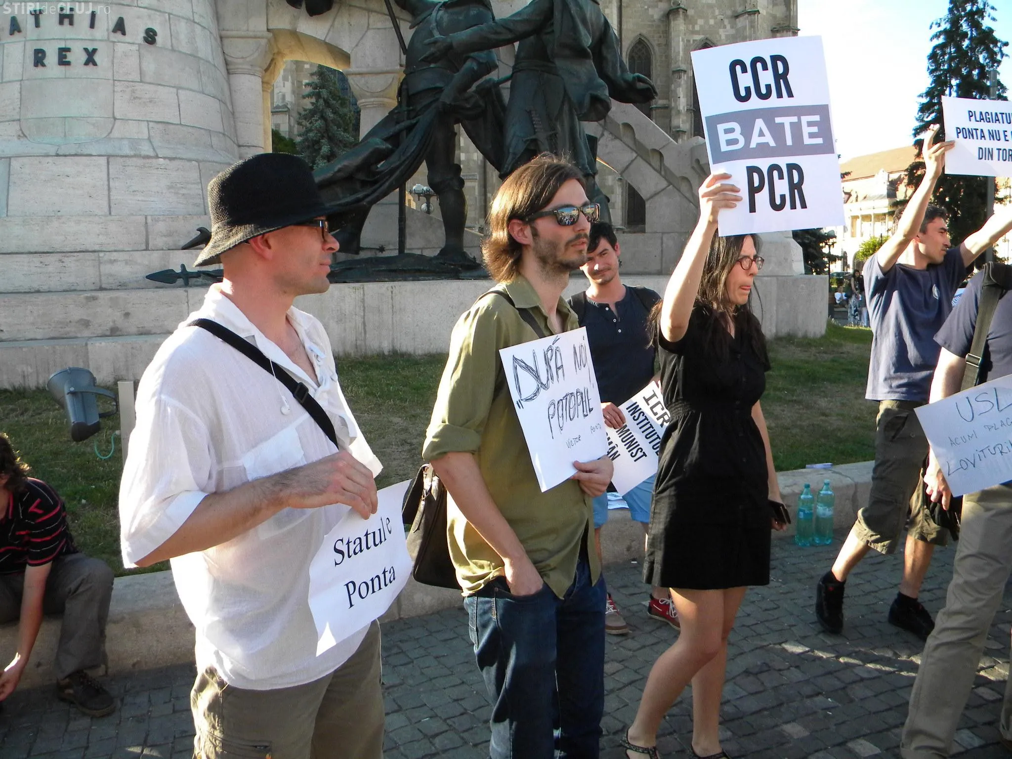 Protest ANTI Ponta în Piata Unirii! Clujenii au adus o imprimantă pentru ”doctorate la minut” VEZI FOTO