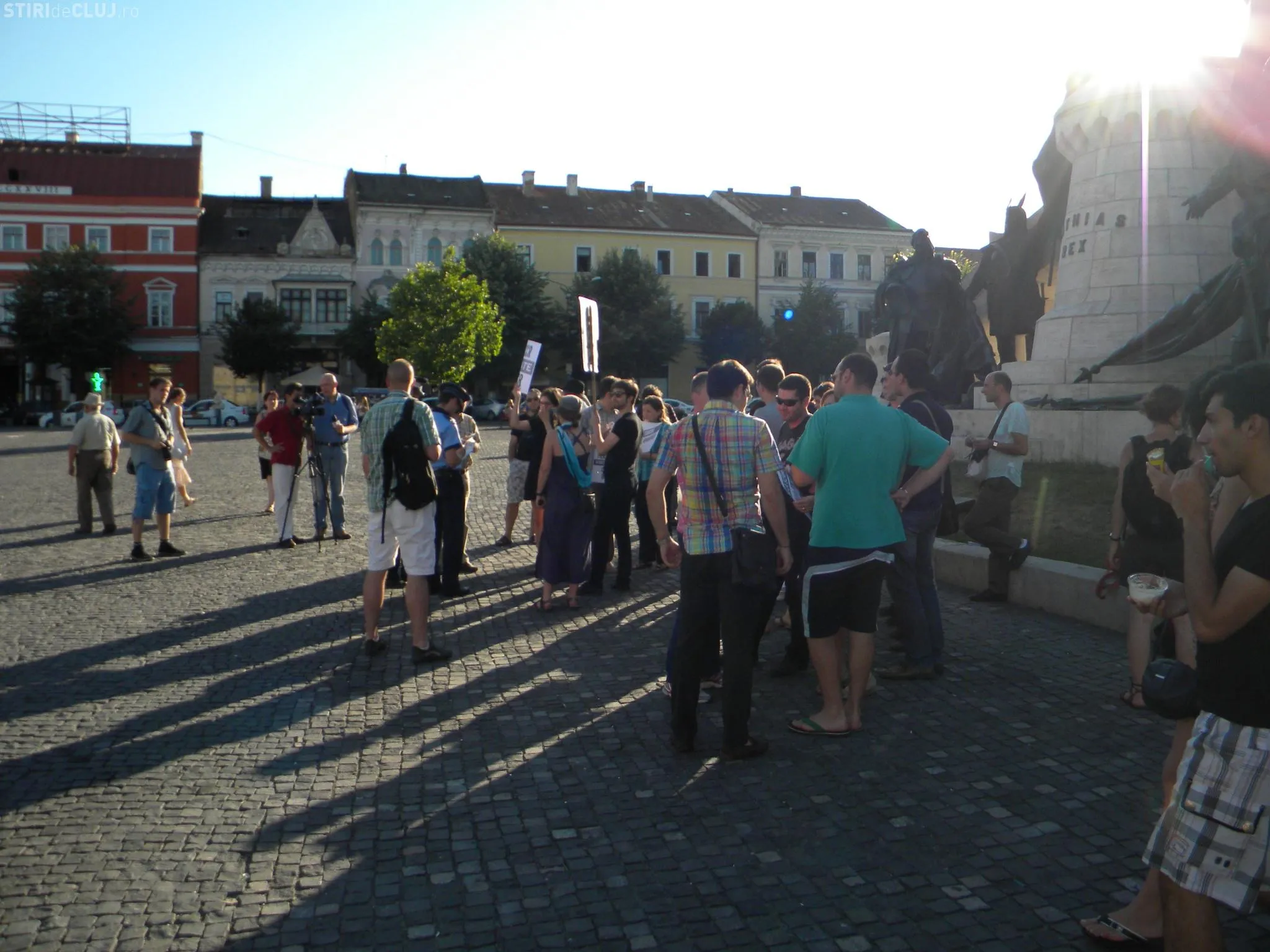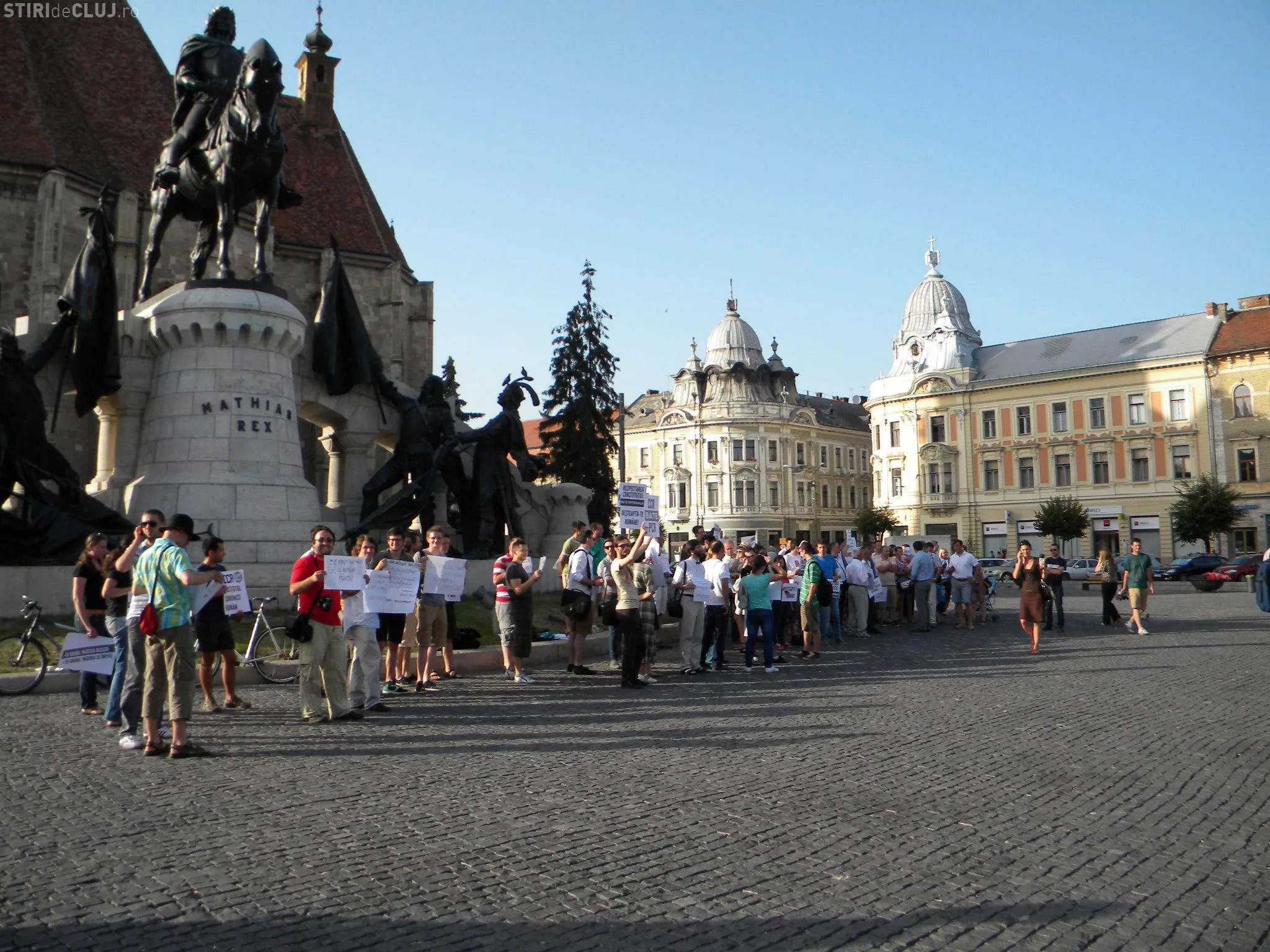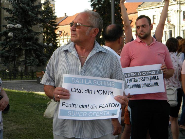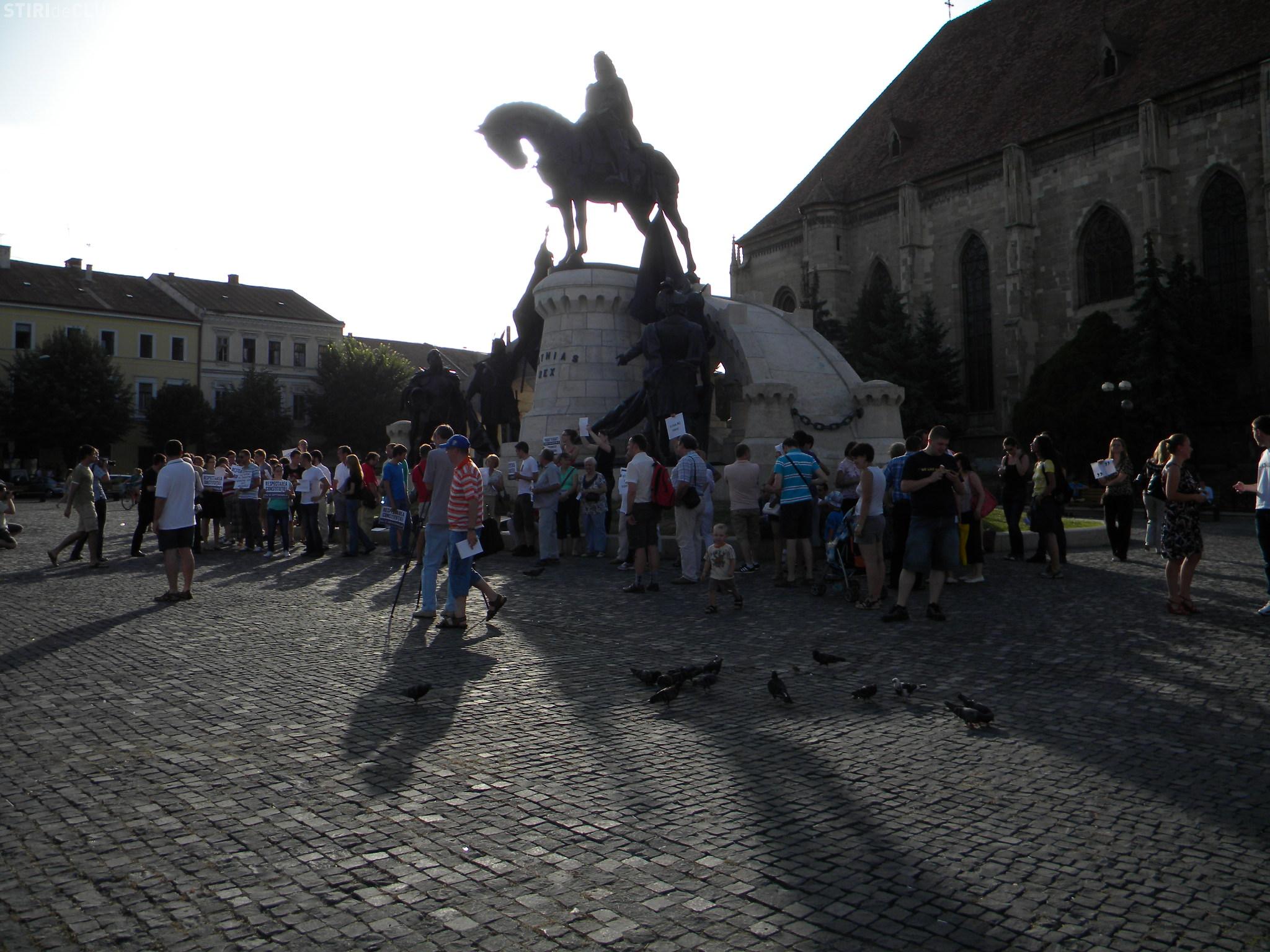 Aproximativ 100 de persoane au protestat miercuri, începând cu ora 19:00 în Piaţa Unirii din Cluj-Napoca împotiva lui Ponta şi a USL.