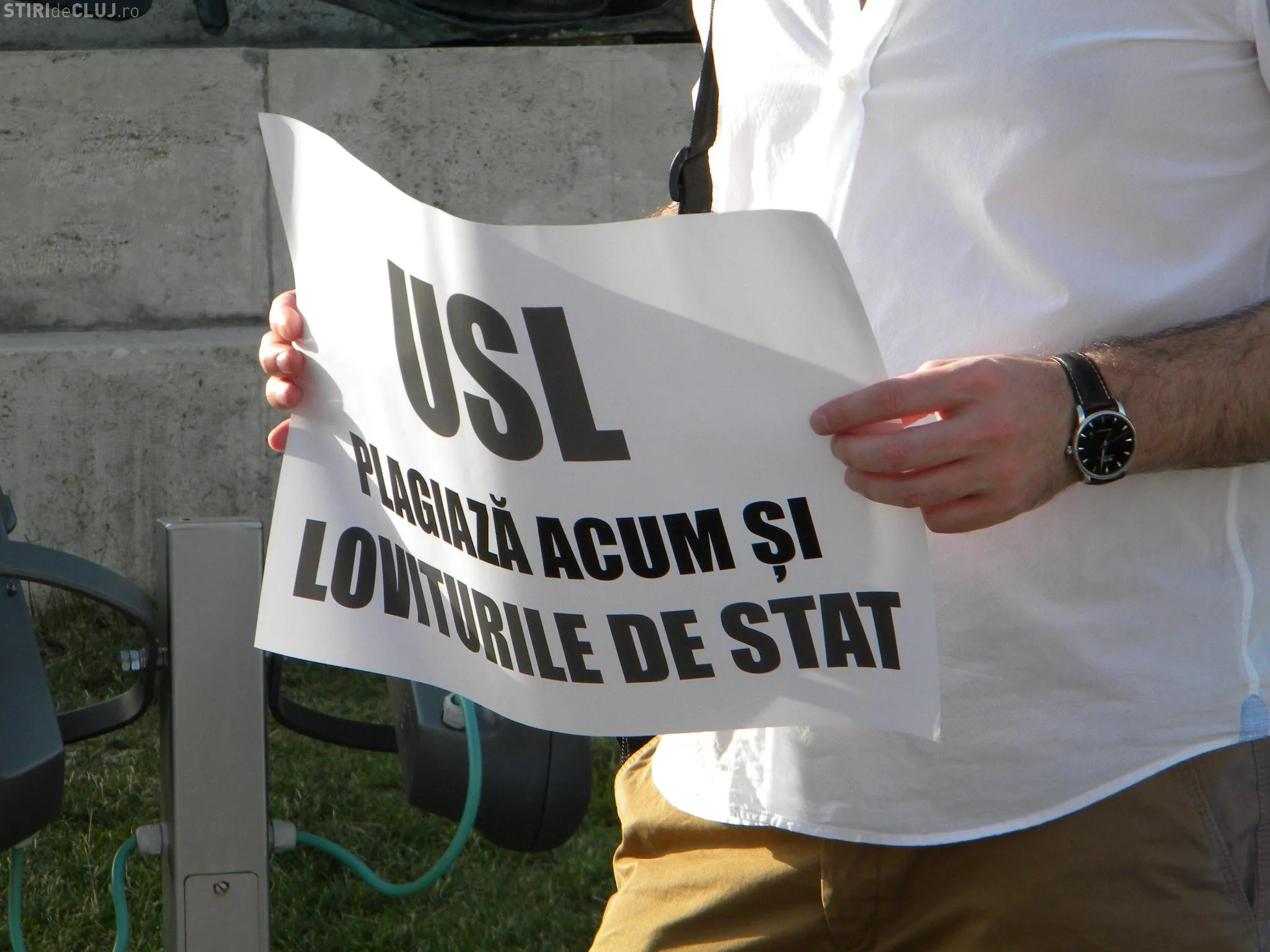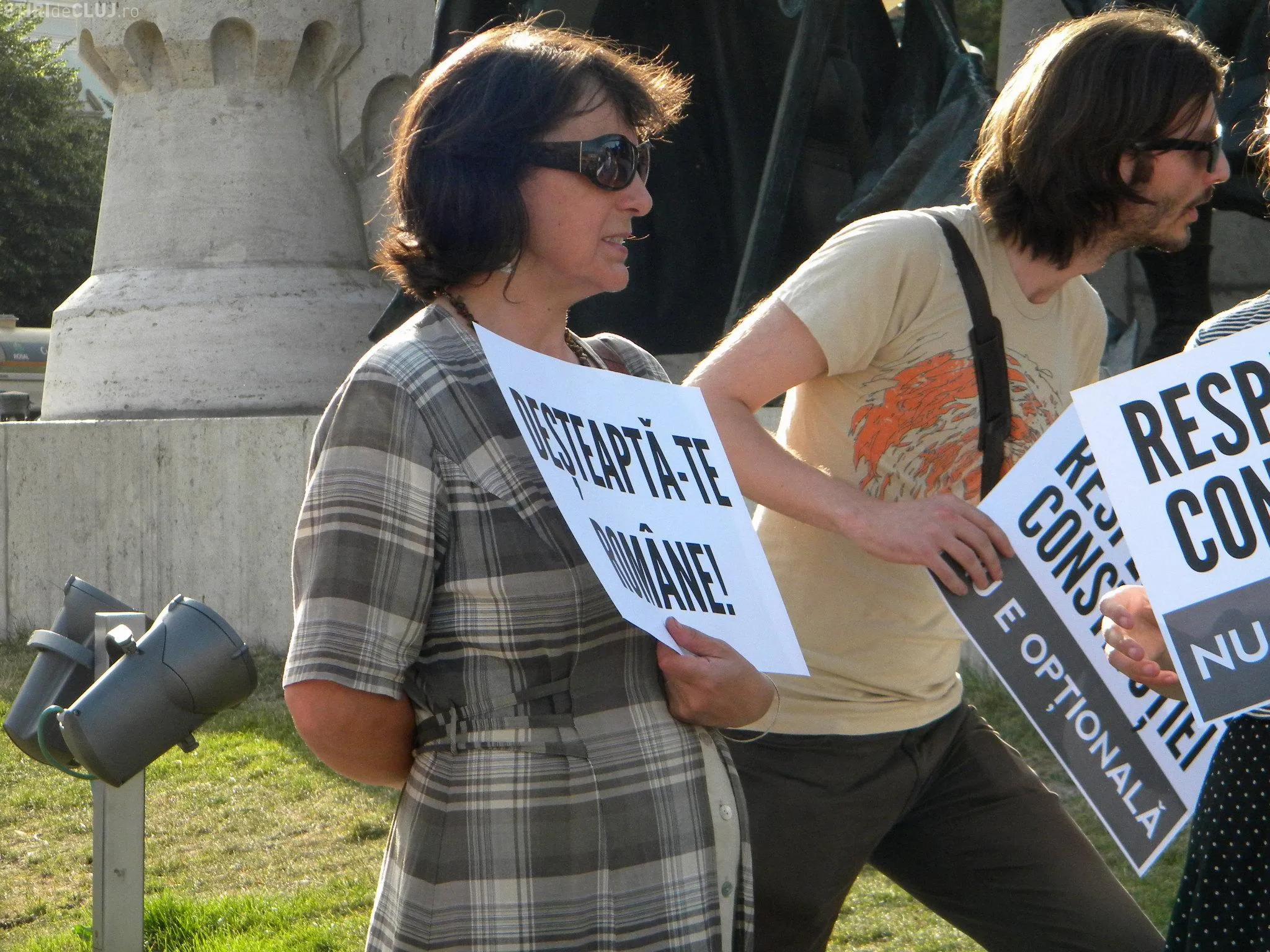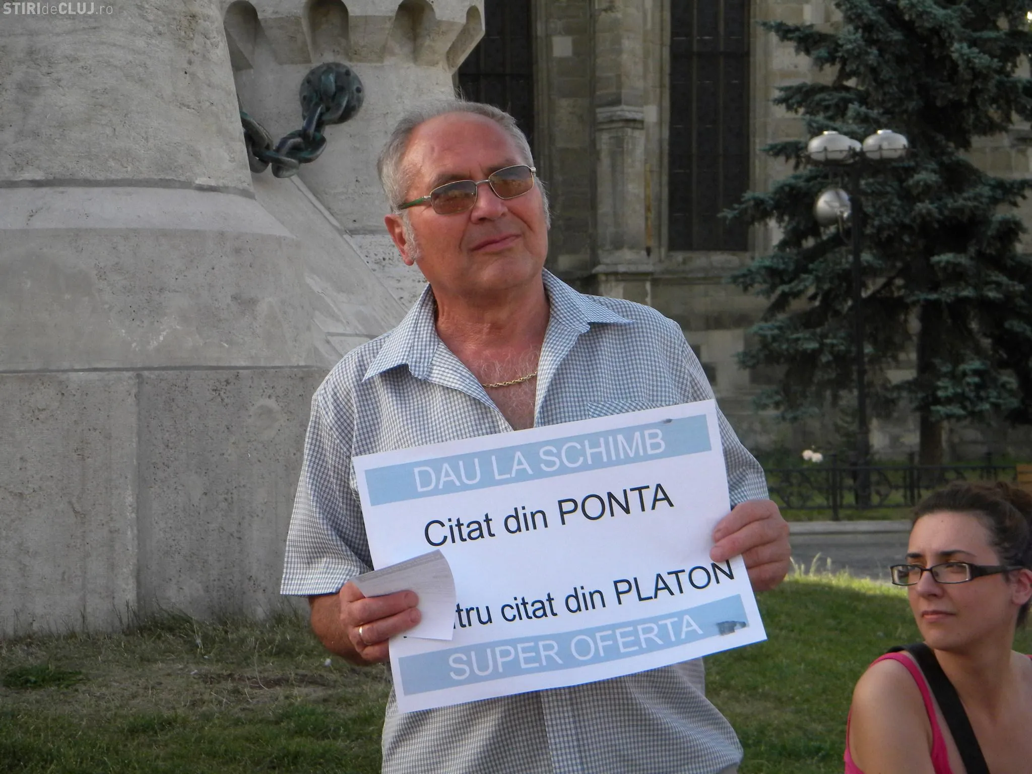 Aproximativ 100 de persoane au protestat miercuri, începând cu ora 19:00 în Piaţa Unirii din Cluj-Napoca împotiva lui Ponta şi a USL.